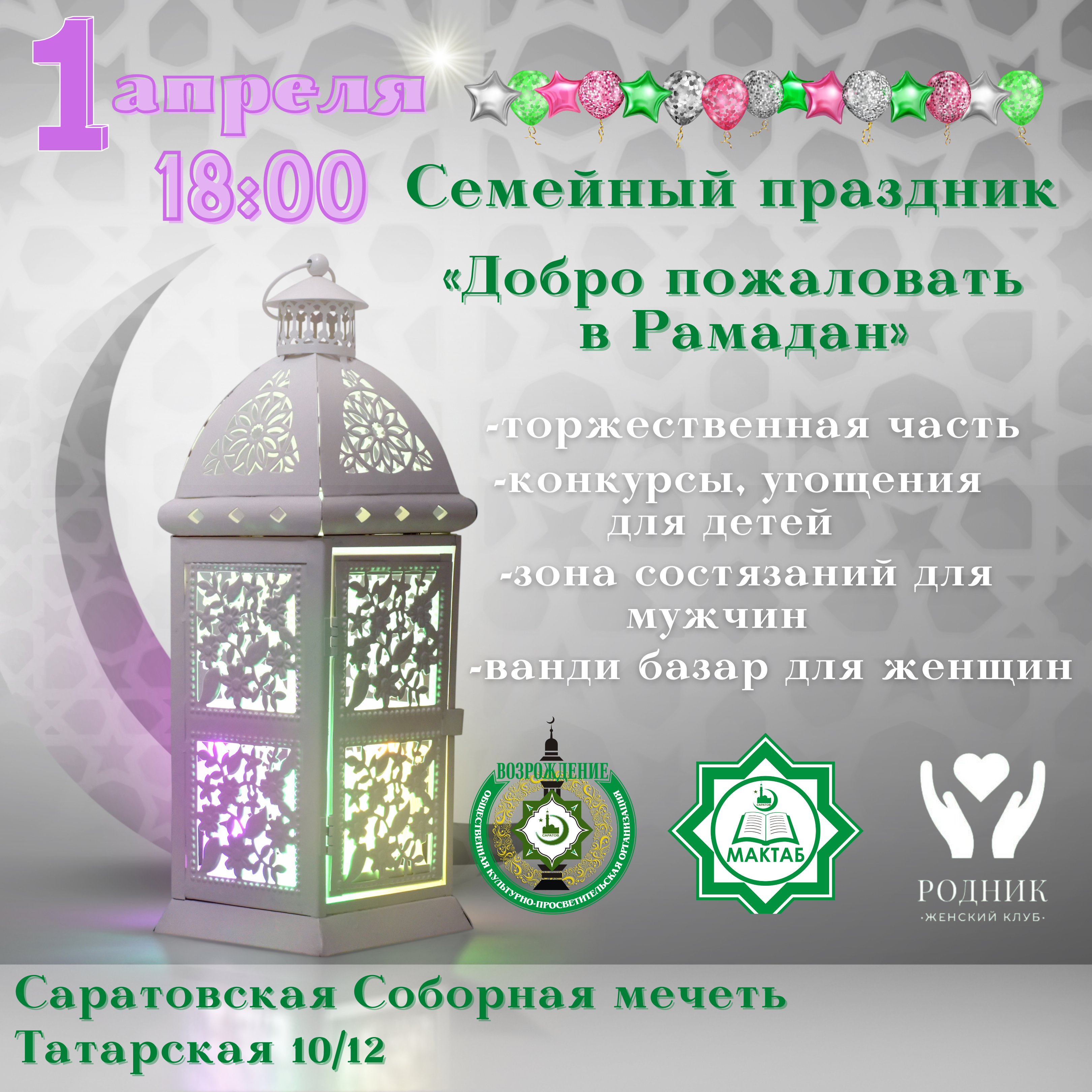 В связи с этим 1 апреля 2022 года в г.Саратове состоится семейный праздник «Добро пожаловать в Рамадан».