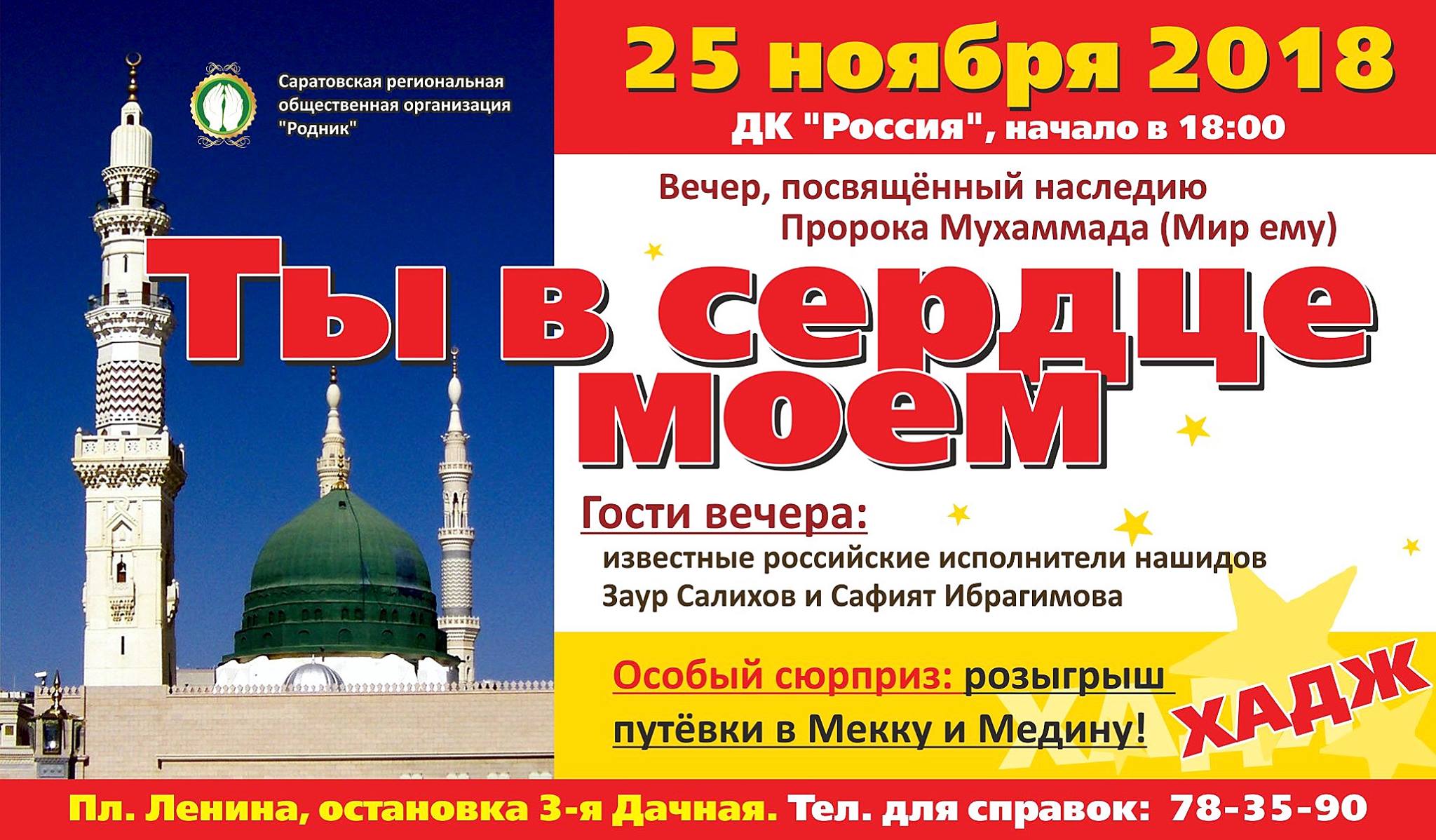 25 ноября в Саратове состоится вечер, посвящённый наследию пророка Мухаммада (мир ему) «Ты в сердце моем».