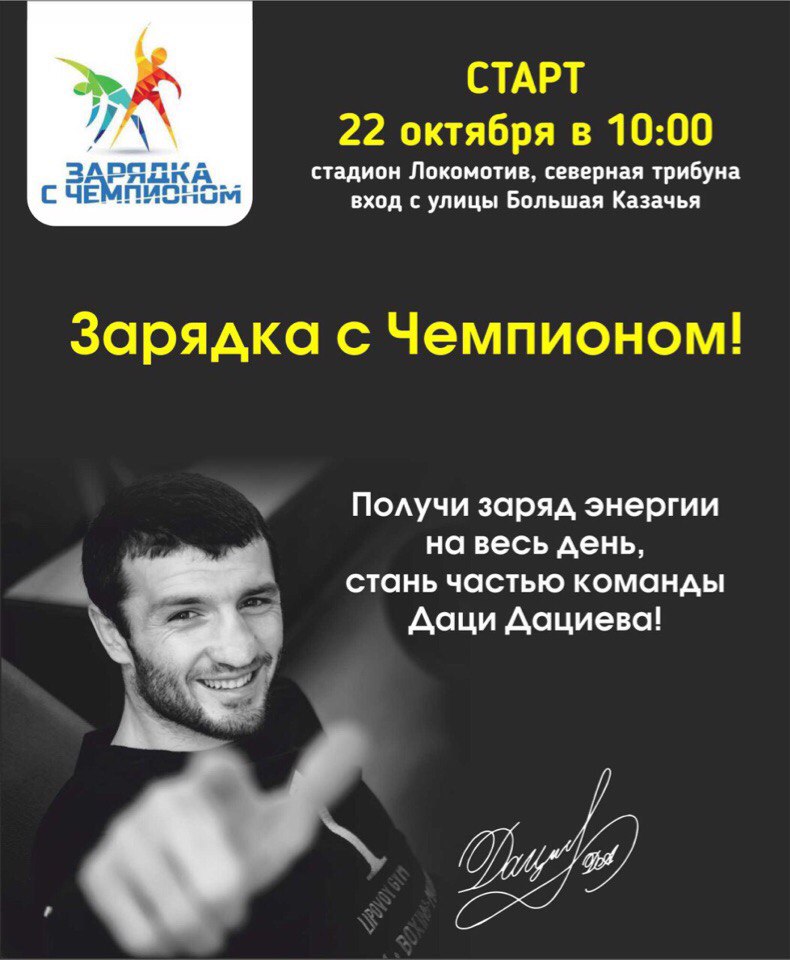 Завтра, 22 октября, «Зарядка с Чемпионом» стартует на стадионе «Локомотив» (Северная трибуна, вход с ул. Б.Казачья).