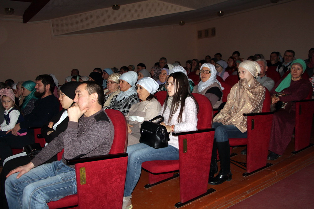 Традиционно вечер начался с чтения аятов священного Корана. Затем зрители узнали краткую биографию пророка Мухаммада (мир ему), а ребятишки из детской школы «Мактаб» при Соборной мечети города Саратова показали интересную тематическую сценку.