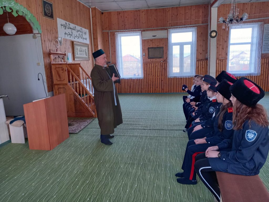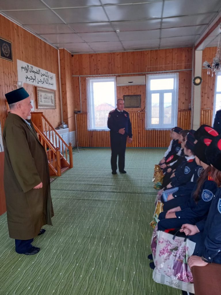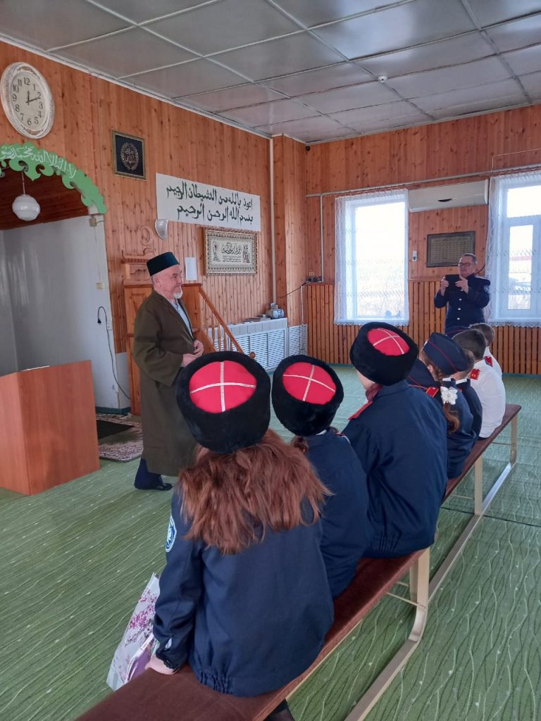 После официальной части имам Пугачевского района Фарид-хазрат Мустафин пригласил кадетов и участников мероприятия посетить городскую мечеть. Там он рассказал собравшимся об истории мусульманского храма и основах исламской религии.