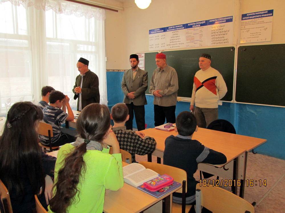 Кроме этого, пугачевский имам посетил среднюю школу №4. В минувший понедельник Фарид-хазрат рассказал ее учащимся об основных вехах жизни пророка Мухаммада (мир ему), а также отметил его вклад в мировую историю.
