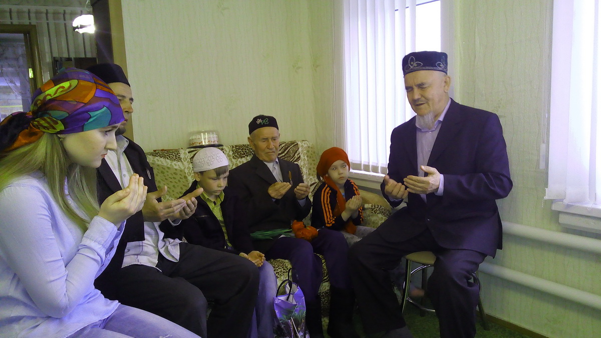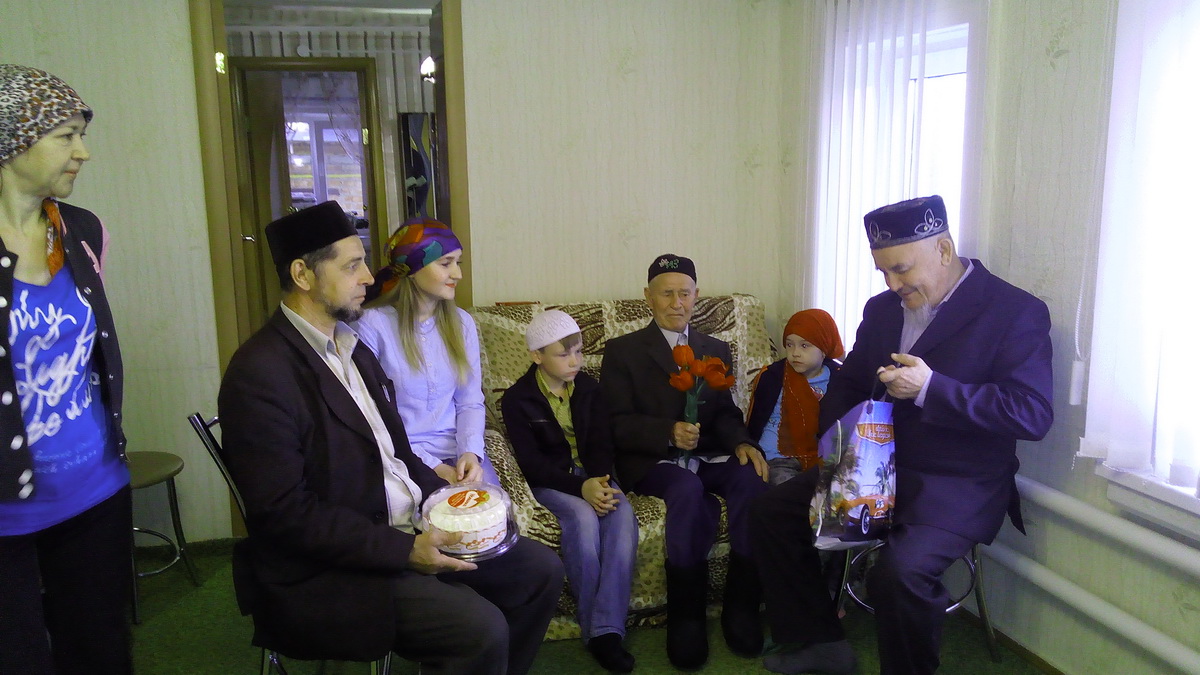 В гости к 90-летнему фронтовику Ибатулле Юскееву пришли имам-мухтасиб Пугачевского района Фарид-хазрат Мустафин, его помощник и местные школьники. Они поздравили единственного оставшегося в живых участника Великой Отечественной войны в местной мусульманской общине с 71-ой годовщиной Победы, пожелали ему крепкого здоровья и долгих лет жизни. Гости подарили Ибатулле Мубиновичу цветы, торт и продуктовый набор.