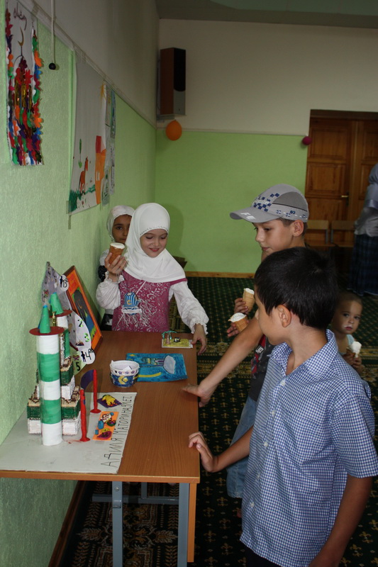 Юные мусульмане вместе с родителями участвовали в познавательной викторине, посвященной месяцу Поста и Священному Корану. Затем были объявлены итоги конкурса поделок и рисунков, стартовавшего в начале Рамадана.