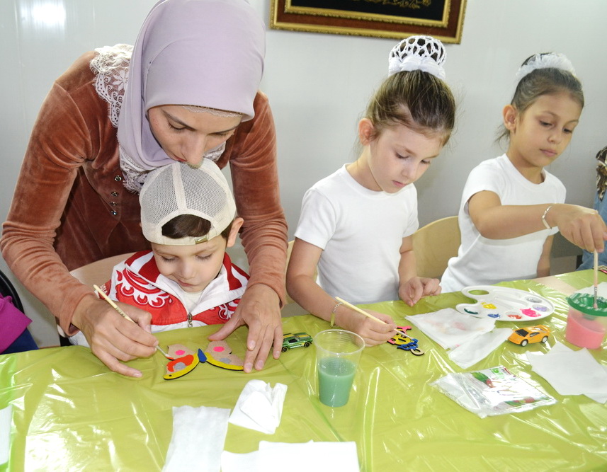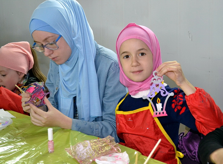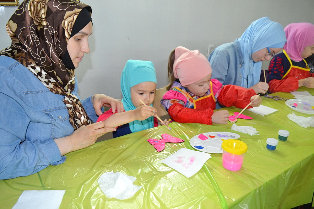 Так, в минувшую субботу несколько десятков юных мусульман расписали гуашью заготовки из дерева. У них получились разноцветные поделки в форме бабочек и фонариков.