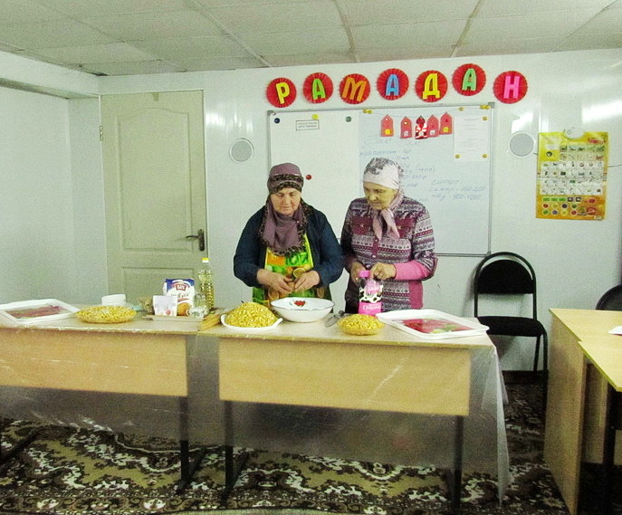 В учебном классе ребята мастерят красочные поделки и сувениры, а также в игровой форме знакомятся с особенностями Благословенного месяца.