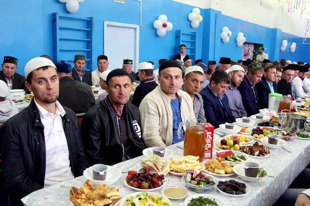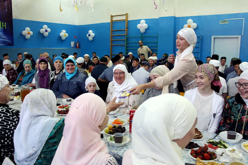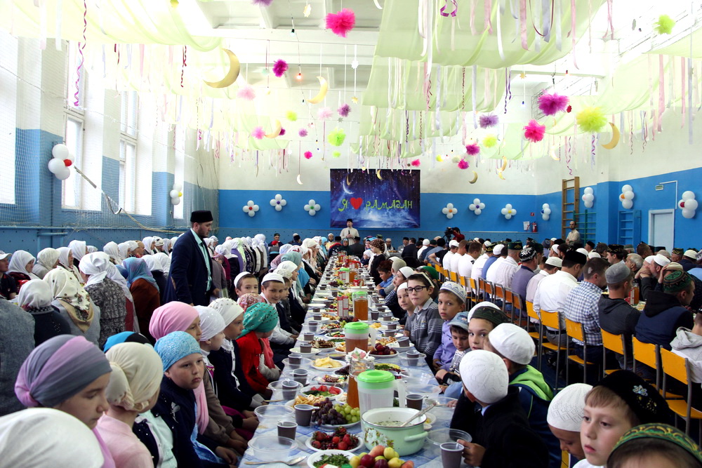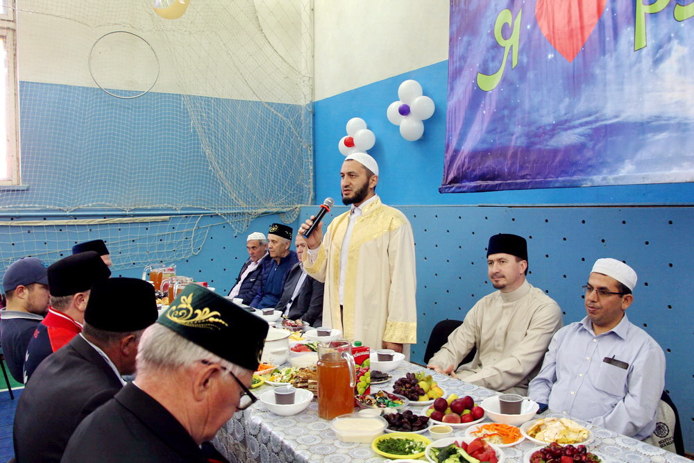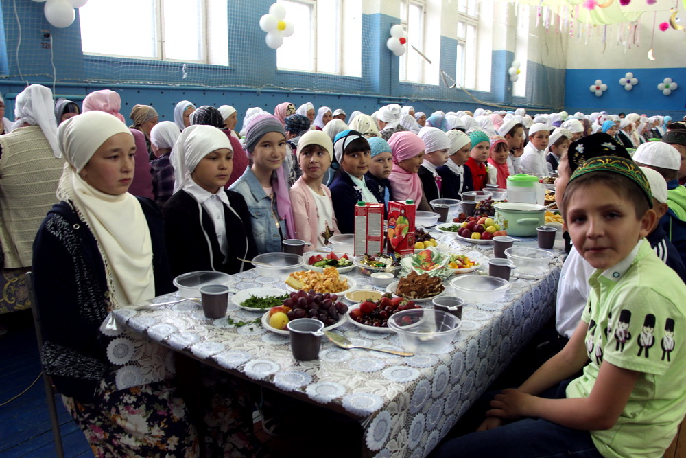 Праздничная встреча в месяц Поста прошла в сельской школе. За час до захода солнца здесь собрались люди разных возрастов, чтобы послушать аяты Священного Корана и получить наставления от духовных лидеров.