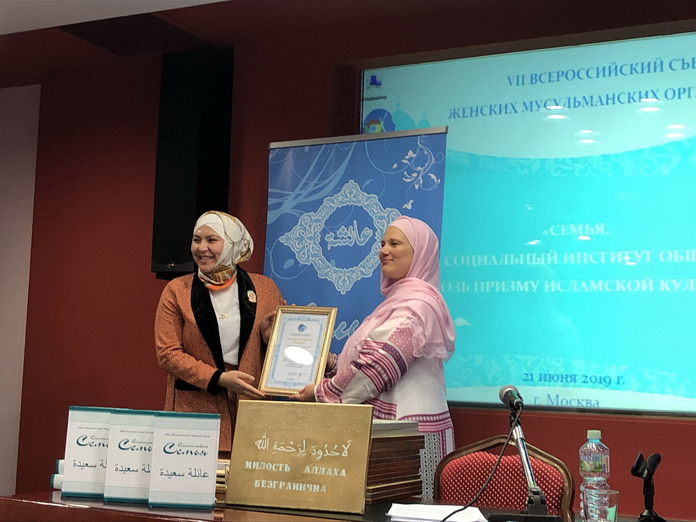 Во второй части мероприятия организаторы подвели итоги Всероссийского конкурса «Лучшая женская мусульманская организация — 2019». Согласно решению жюри, кубок победителя и благодарственное письмо заслужила женская общественная организация «Родник» за достигнутые успехи в деле воспитания, просвещения и духовного развития мусульман, создание благоприятного образа Ислама в России, социальное служение российскому обществу и государству.