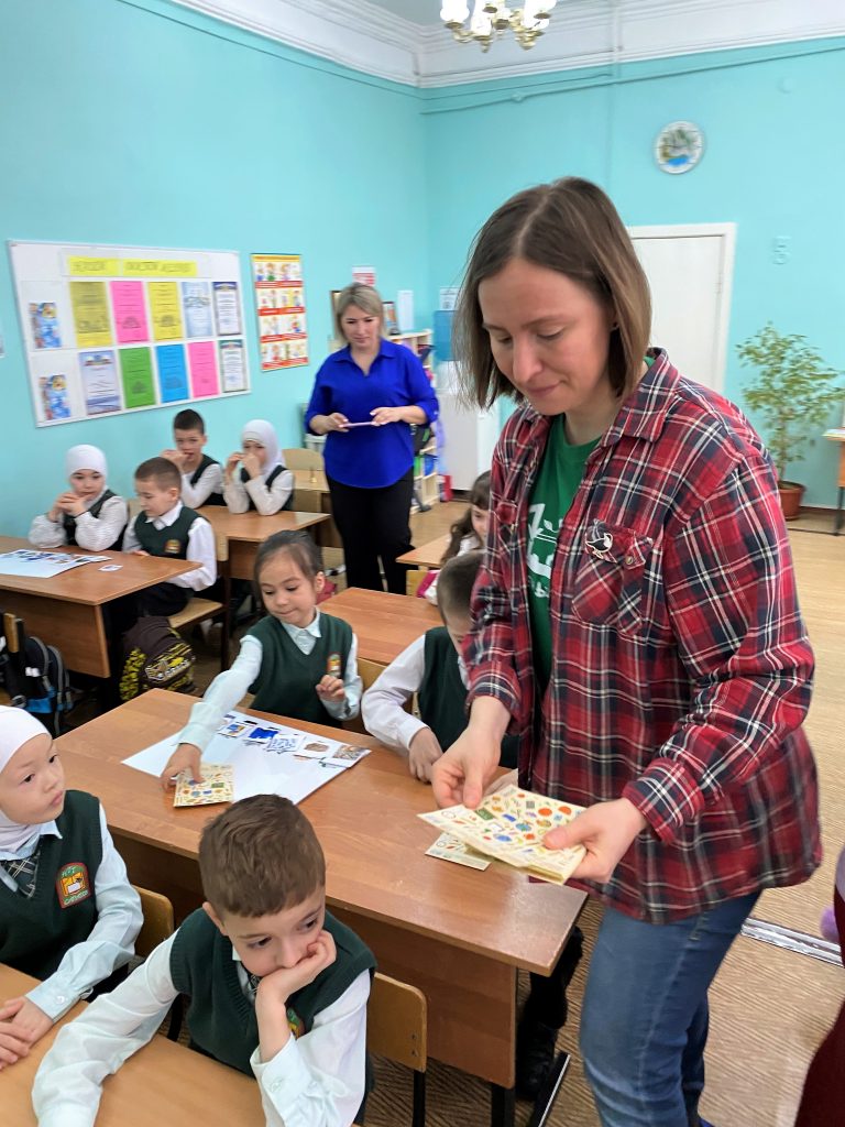 В начале встречи орнитолог, кандидат биологических наук, волонтёр экологического движения «Зелёный бык» Ирина Демина вместе с игрушечным быком Светлячком познакомила ребят с раздельным сбором отходов. Первоклассники охотно обсуждали проблему загрязнения рек, делились своими наблюдениями и размышляли, почему решение этой задачи настолько важно для всех людей.