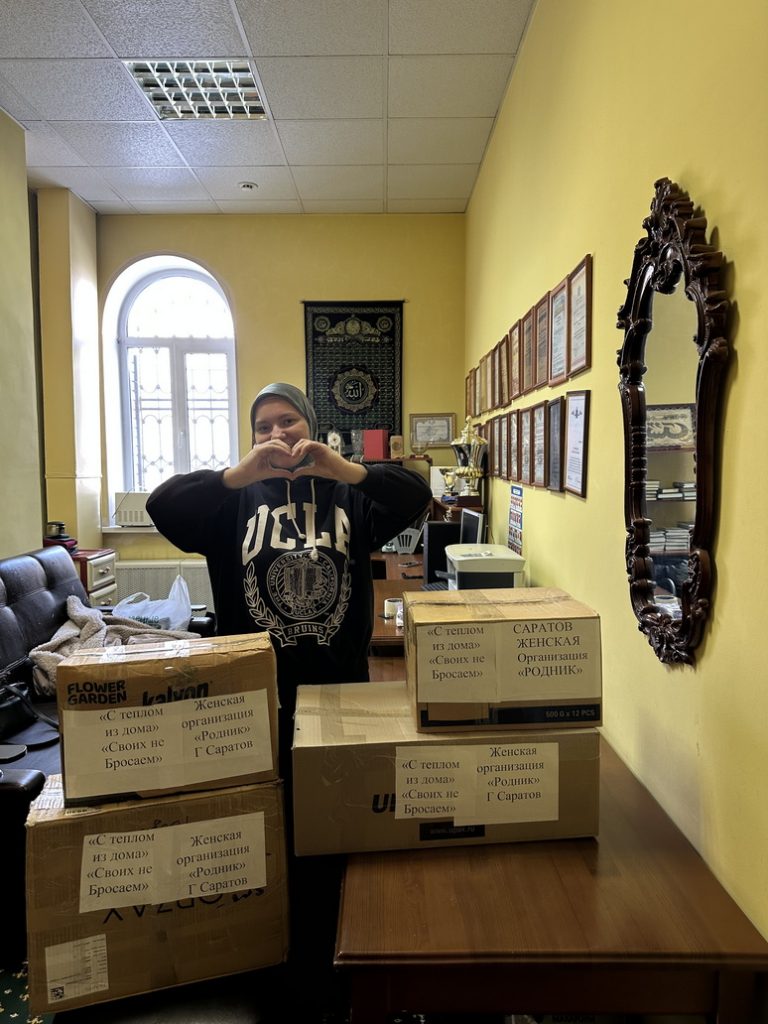 Как отметила руководитель «Родника» Хадиджа Бибарсова, между волонтерской группой и женской организацией действует договоренность о сотрудничестве, в рамках которой мусульманки имеют возможность направлять гуманитарную помощь в зону спецоперации. Грузы регулярно доставляет до пункта назначения руководитель «Охотников 64» Залимхан Кашеров.