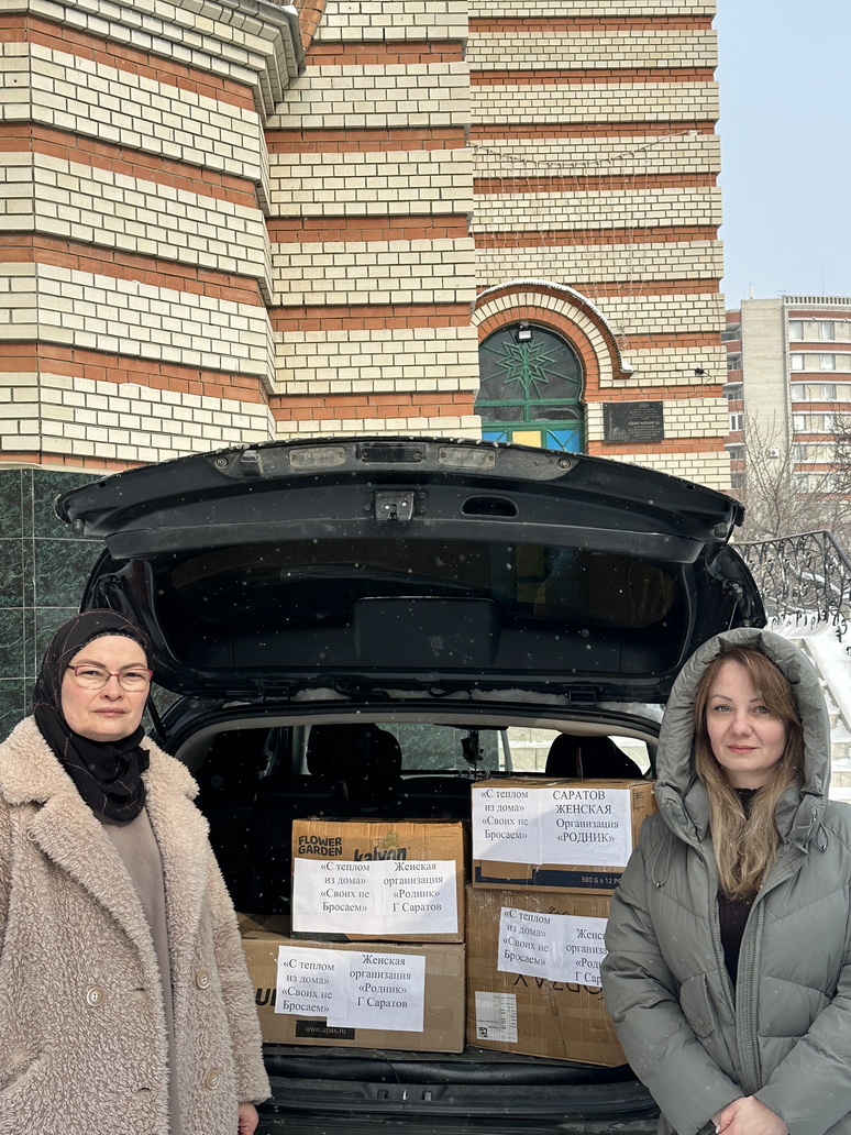 В конце февраля женская организация «Родник» приняла участие в сборе гуманитарного груза в зону СВО. Помощь была передана военнослужащим через волонтерскую группу «Охотники 64».