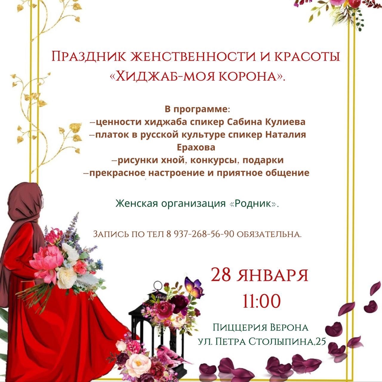 28 января 2024 года женская организация «Родник» проводит встречу, приуроченную ко Всемирному дню хиджаба.