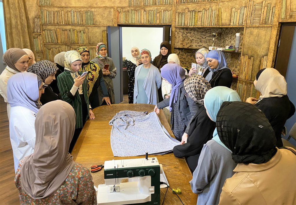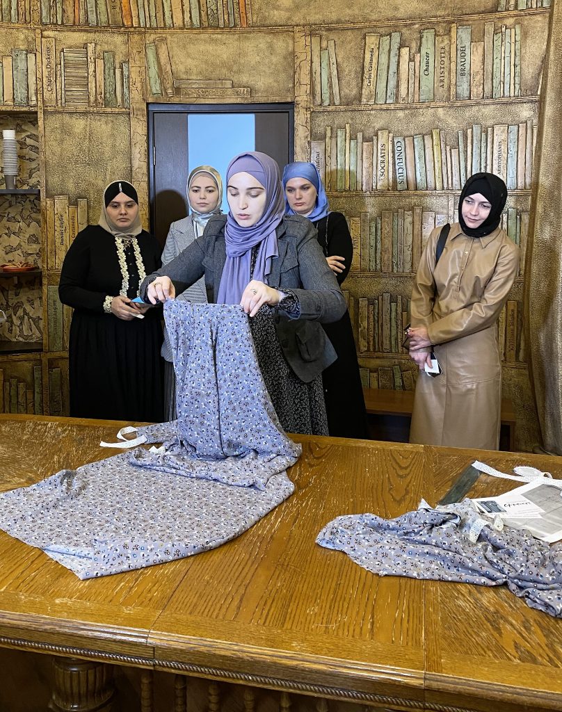 Участниц встречи также ждал мастер-класс. Модельер Марьям Омарчиева провела обучающий урок и наглядно продемонстрировала, как можно сшить платье для намаза за 15 минут.