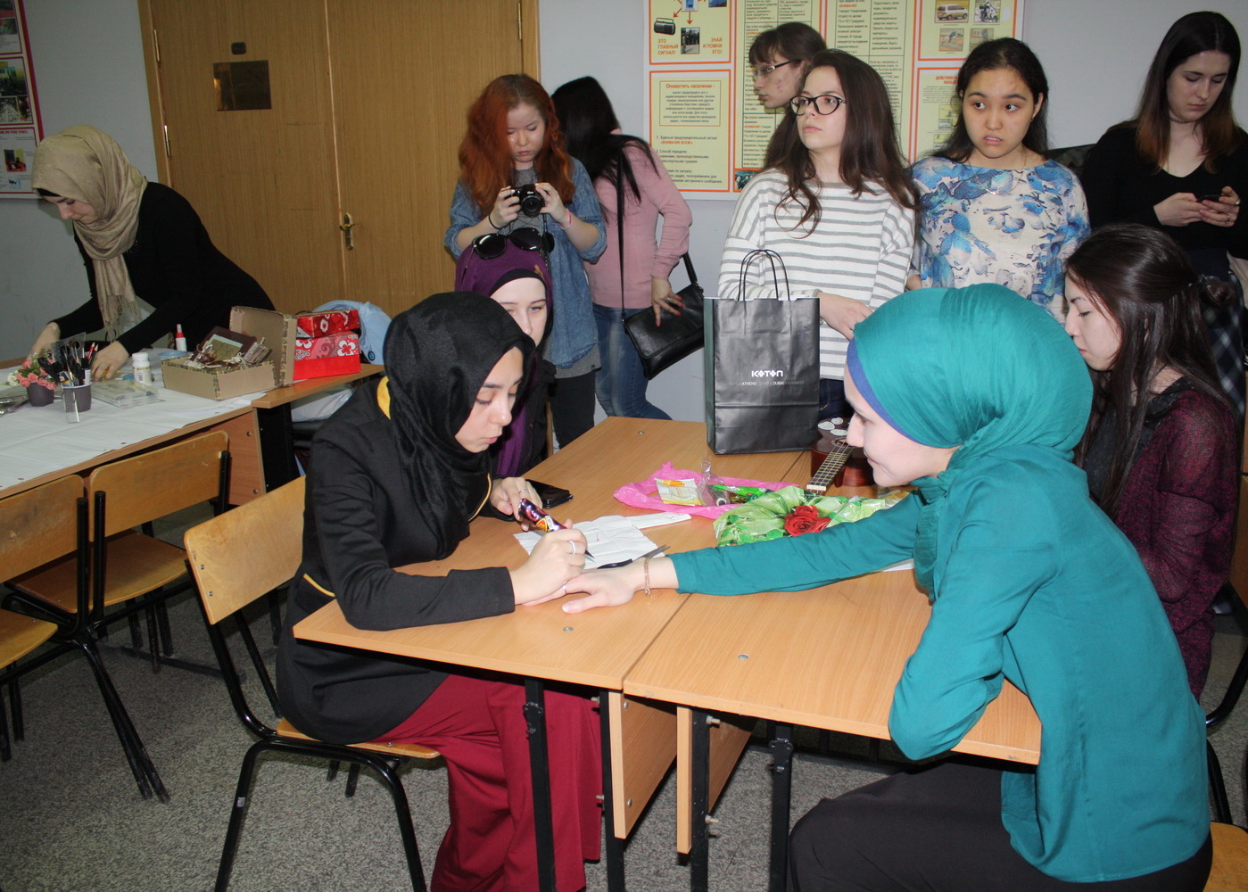 Мусульманки приняли участие в празднике и поделились со студентками умением создавать шедевры своими руками. Мастер-класс по скрапбукингу заинтересовал многих. В процессе работы девушки общались, делились впечатлениями, а по завершении все творения остались в подарок их авторам.