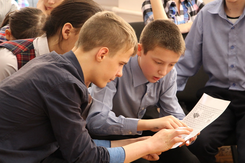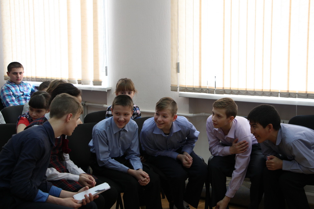 Для ребят средних классов они подготовили конкурсно-игровую программу. Мальчики и девочки, разделившись на две команды, приняли участие в викторине, разгадывании головоломки, а также в конкурсе пародий.