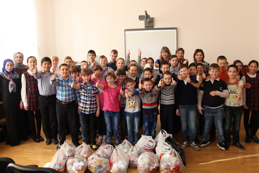 В конце мероприятия всем воспитанникам школы-интерната №5 вручили сладкие подарки, которые были собраны совместно с родительским комитетом Национальной татарской гимназии г. Саратова.