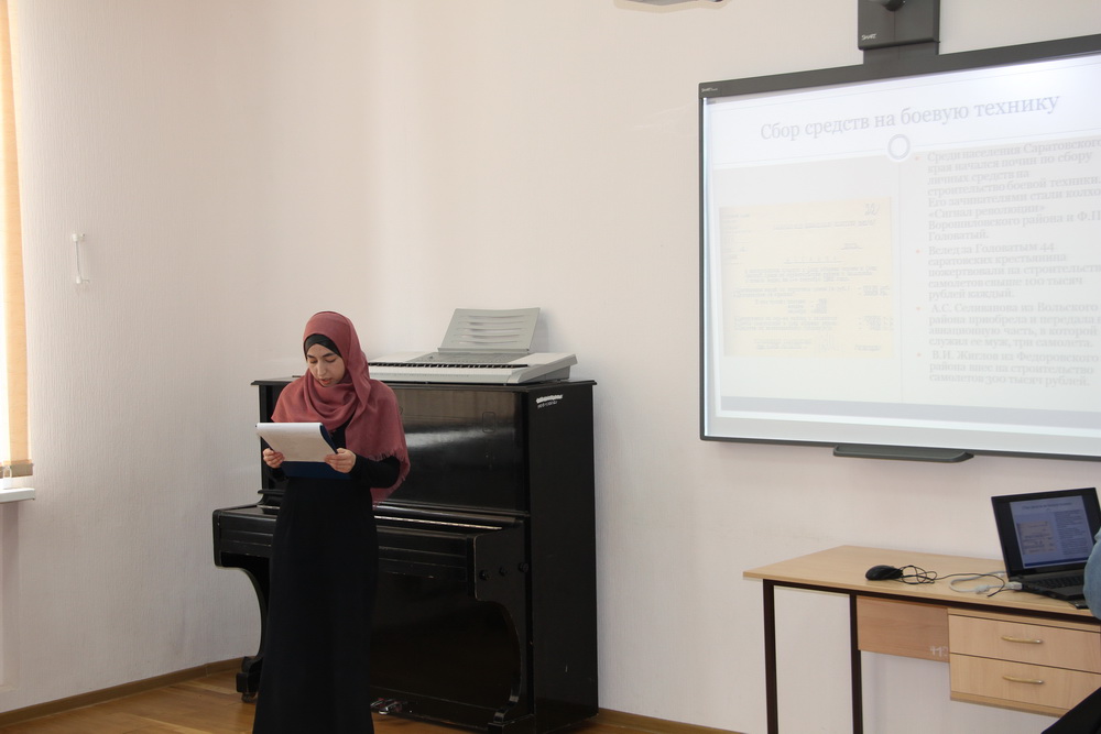 С этой целью 24 апреля активистки «Родника» навестили воспитанников коррекционной школы-интерната №5. г. Саратова. В ходе мероприятия ребятам средних классов с помощью презентации напомнили о событиях 1941-1945 гг., а также рассказали о героях и подвигах тех, кто встал на защиту Родины от фашистов.