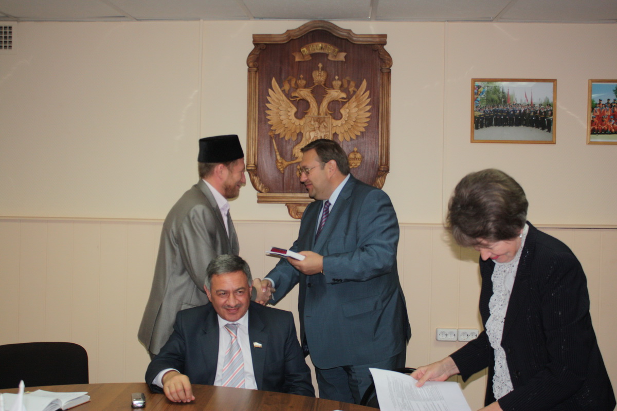 Затем начальник регионального Росстата вручил ведомственные знаки отличия Федеральной службы государственной статистики главам национальных диаспор. Также медалью «За заслуги в проведении Всероссийской переписи 2010 года» был отмечен муфтий Саратовской области Мукаддас-хазрат Бибарсов.