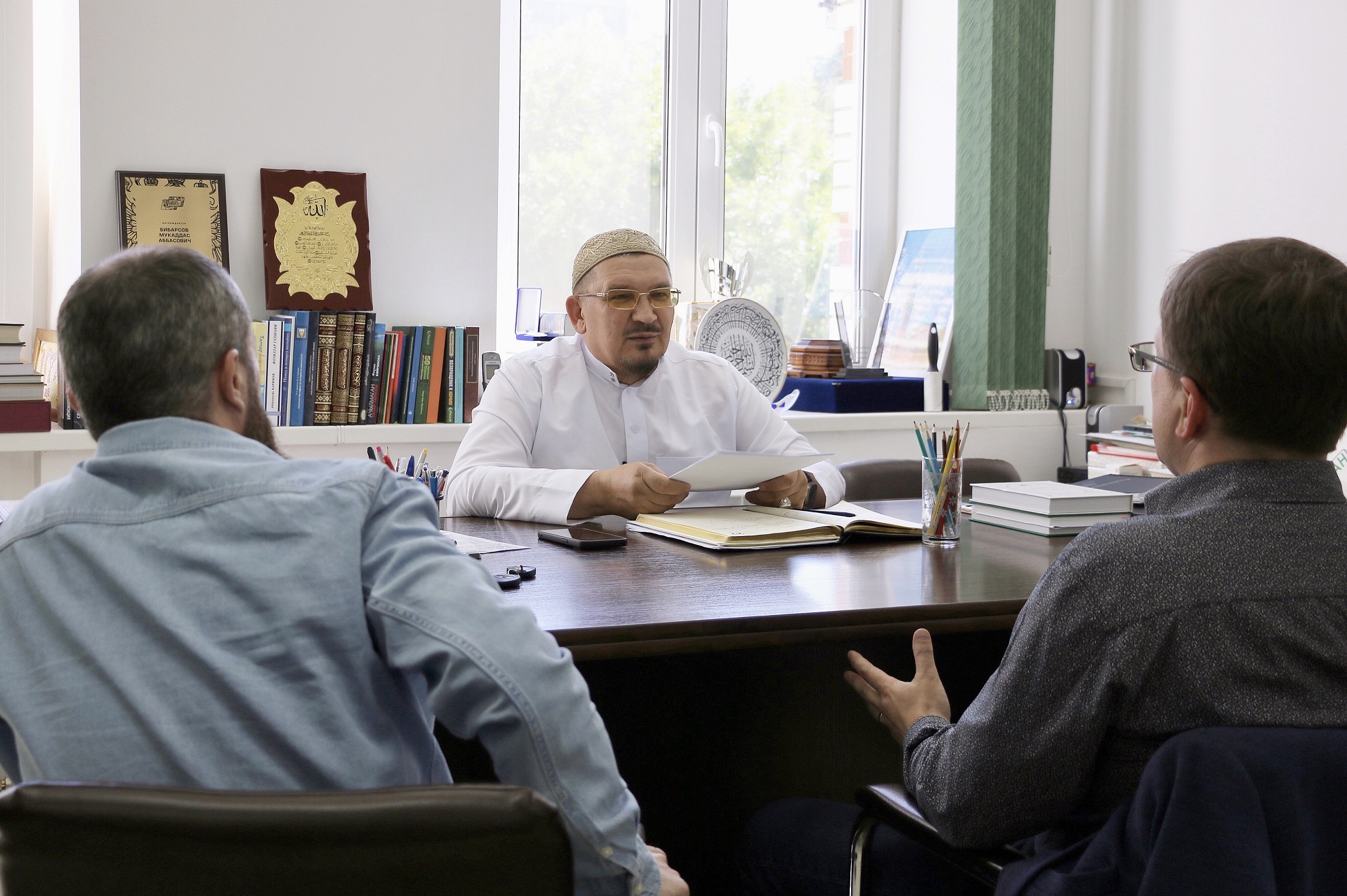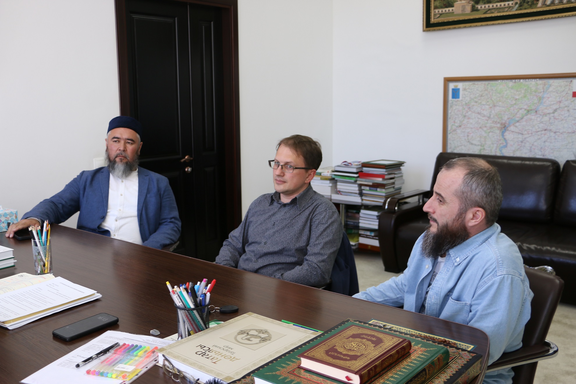 Здесь он встретился с главой Духовного управления мусульман Поволжья Мукаддасом-хазратом Бибарсовым, руководителем коранического центра «Зейд бин Сабит» Ильясом-хазратом Ильясовым, членами Президиума ДУМСО Ахмедом-хаджи Махметовым и Рустамом-хазратом Мухитовым.
