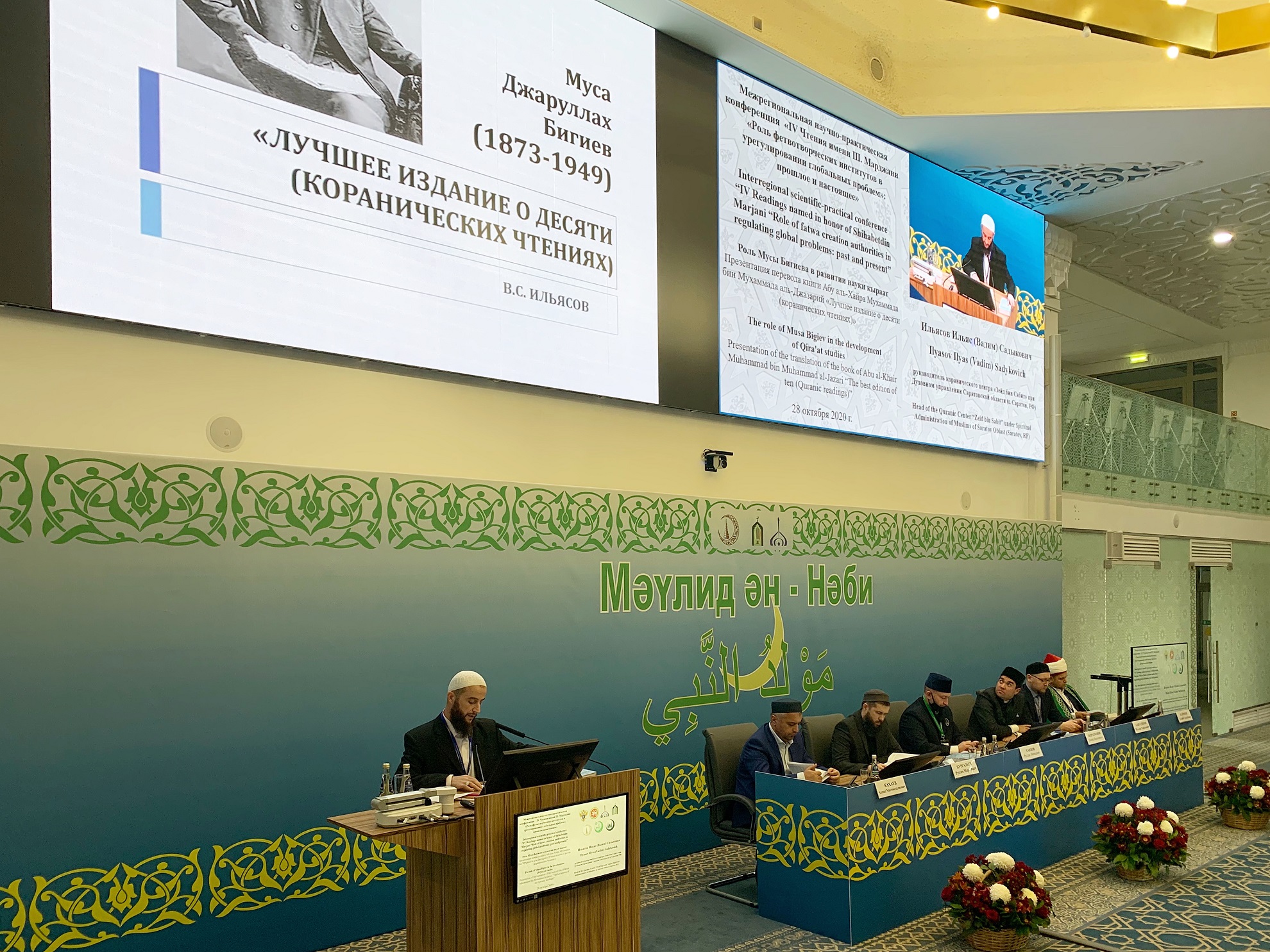В ходе пленарного заседания руководитель коранического центра «Зейд бин Сабит» при ДУМСО, кандидат филологических наук Ильяс-хазрат Ильясов презентовал перевод на русский язык толкования Мусы-хазрата Бигиева книги «Лучшее издание о десяти (коранических чтениях)» шейха Ибн Аль-Джазарий. Ильяс-хазрат рассказал, как проходила работа над адаптированным переводом труда Мусы-хазрата Бигиева (издан в 1911 году в г.Казани на арабском языке), считавшегося долгое время утерянным.