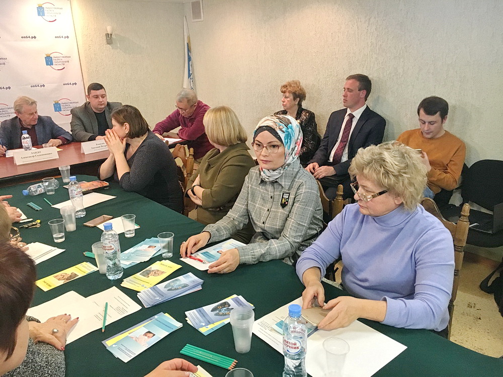 В заседании приняли участие члены ОП, врачи, общественные деятели и др. На встречу также была приглашена член Общественного совета при министерстве здравоохранения Саратовской области, руководитель женской общественной организации «Родник» Хадиджа Бибарсова.