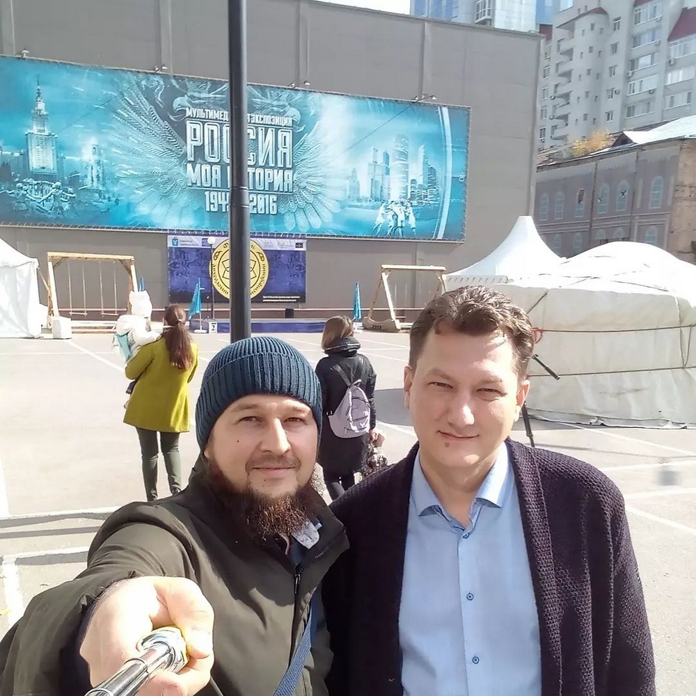В ходе посещения фестиваля Рустам-хаджи Абдульманов встретился с руководителем археологических экспедиций, исследователем Укека, директором саратовского Исторического парка «Россия — Моя история» Дмитрием Кубанкиным.