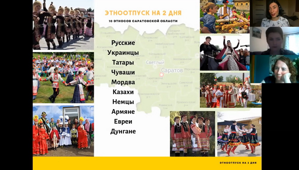 В ходе онлайн-мероприятия прошла презентация проекта. Его цель — познакомить жителей и гостей Саратовской области с богатой этнокультурной палитрой нашей губернии, показать современными игровыми медиасредствами особенности каждой национальности и универсальность общих жизненных ценностей. Проект объединяет три формата – интерактивная «ЭтноЭнциклопедия Саратовской области», мобильное приложение «ЭтноГид Саратовской области» и телепроект «ЭтноОтпуск на 2 дня».