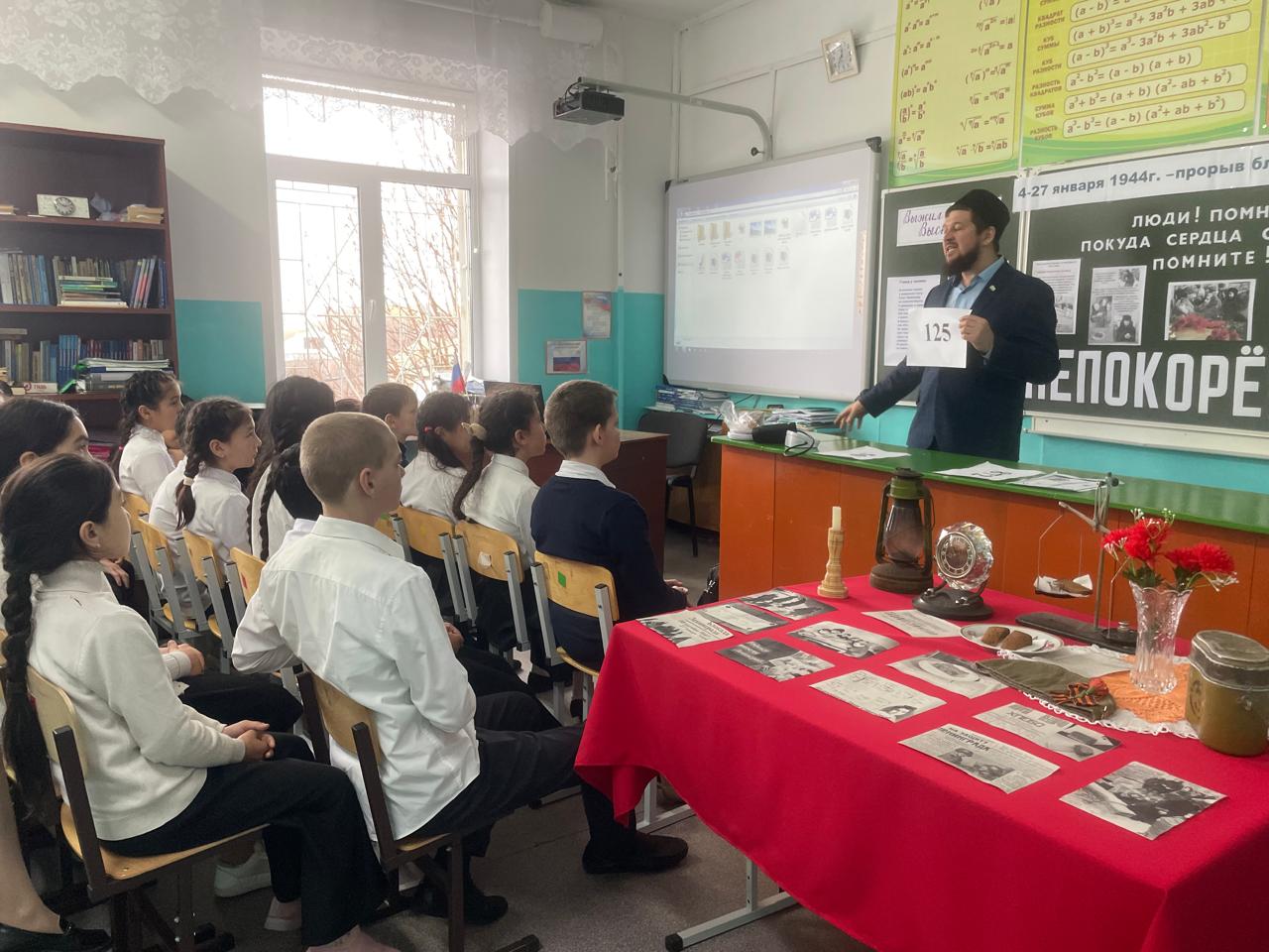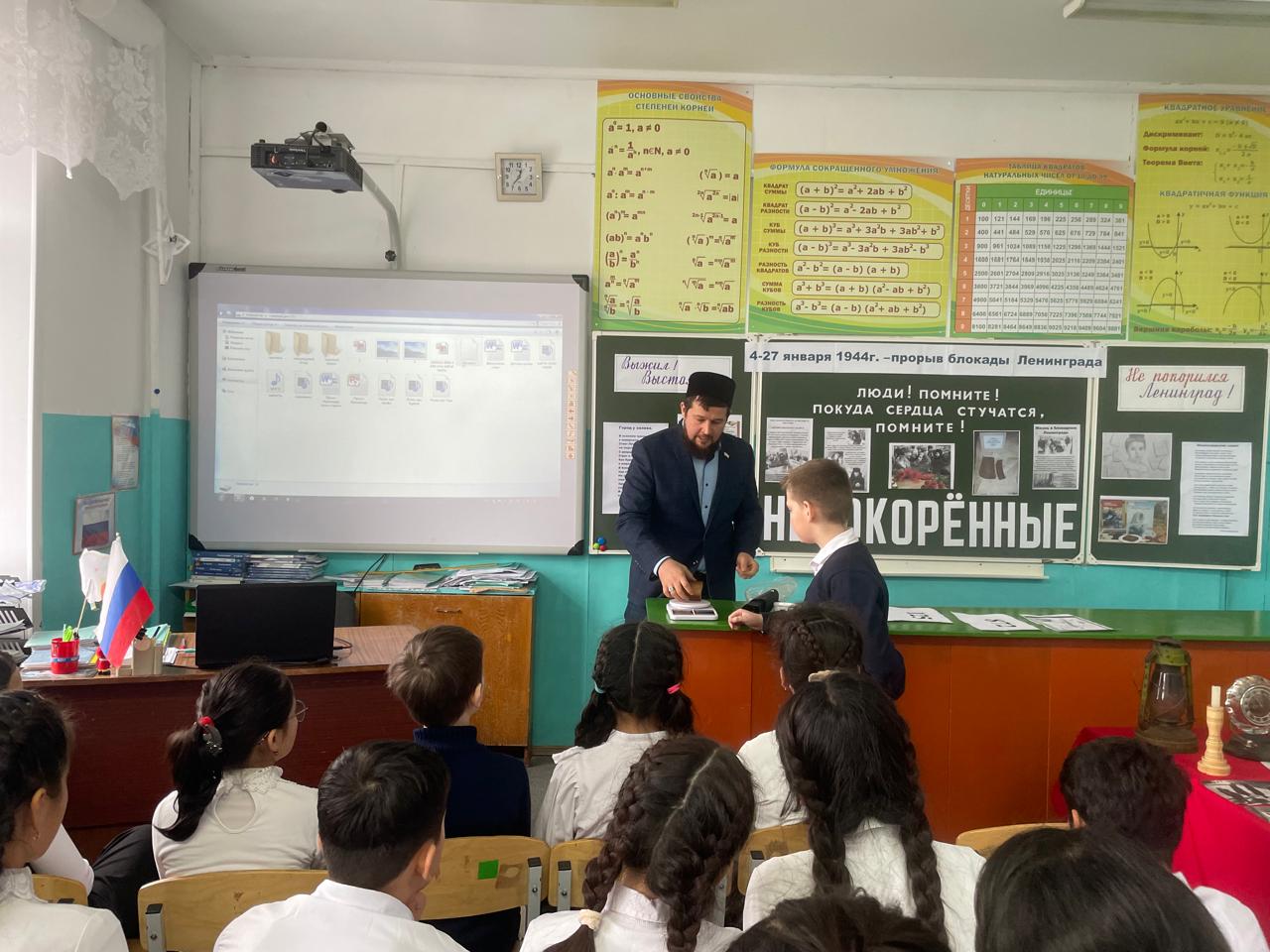 Руководитель общественно-просветительской организации «Возрождение» Рустам Абдульманов посетил общеобразовательную школу села Константиновка, где провел урок памяти, посвященный Дню снятия блокады города Ленинграда.
