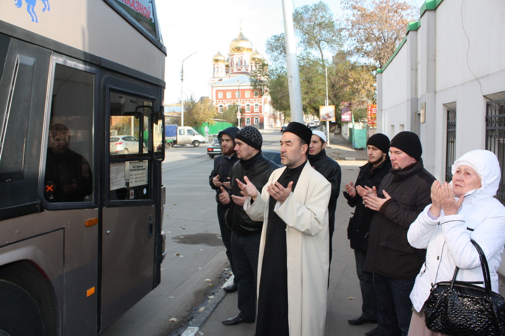 Вчера, 25 октября, из Саратовской области в Хадж благополучно выехала вторая, самая большая из трех, группа мусульман. С раннего утра в здании Исламского комплекса было очень оживлено. Здесь вместе с родственниками, близкими, детьми и родителями паломники ожидали своей поездки, перед которой состоялось собрание, где они получили инструктаж и наставление имама саратовской соборной мечети Шавкят-хазрат Хакимова.