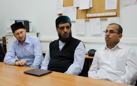 Вечером в конференц-зале Исламского комплекса Фейсал аль-Джабир познакомился с деятельностью ДУМ региона, а также его сотрудниками, преподавателями медресе «Шейх Саид», представителями женской организации «Родник» и активистами общины.