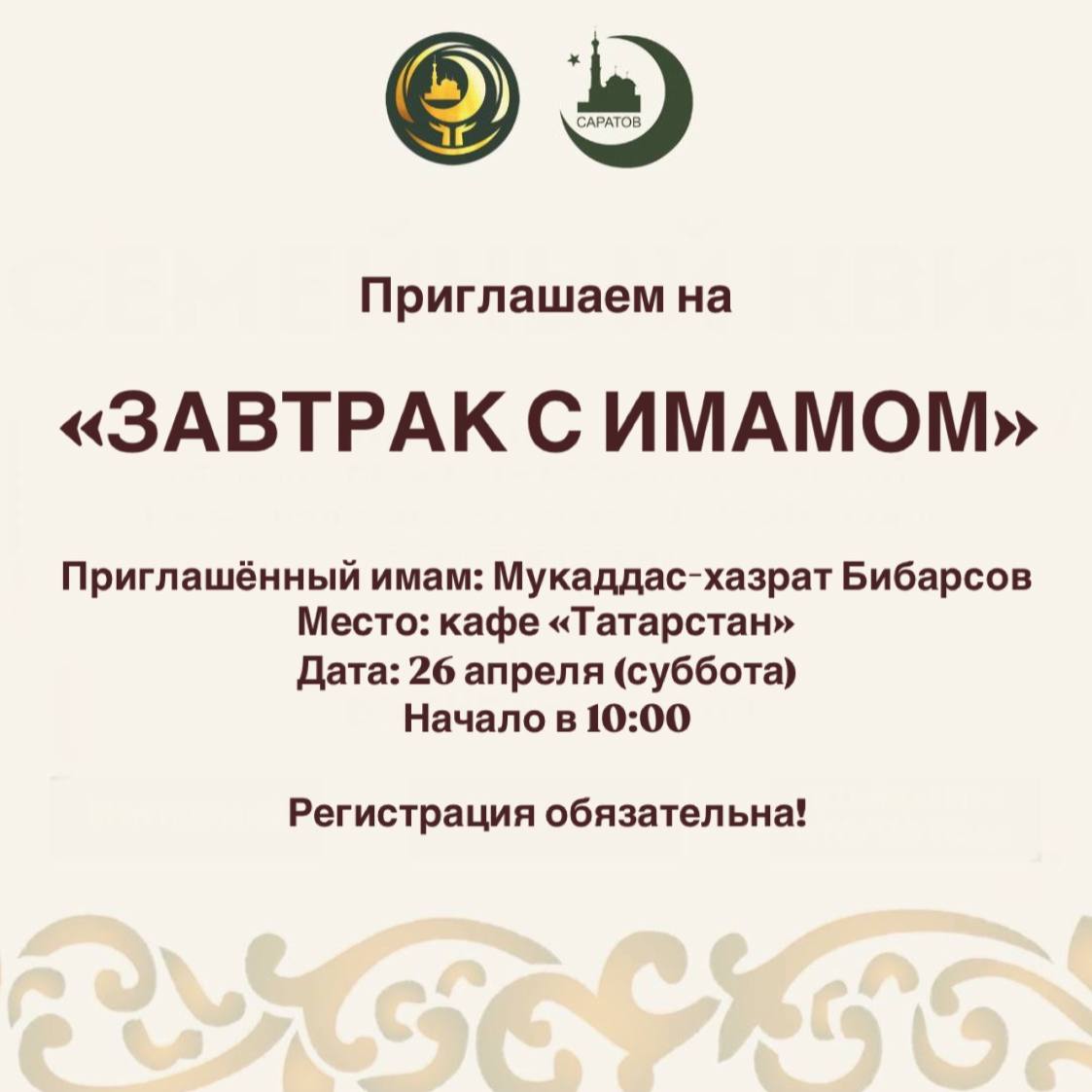 Мероприятие пройдет в формате завтрака в халяльном кафе «Татарстан». Его организатором выступает ДУМ Саратовской области при поддержке БФ «Юмарт».