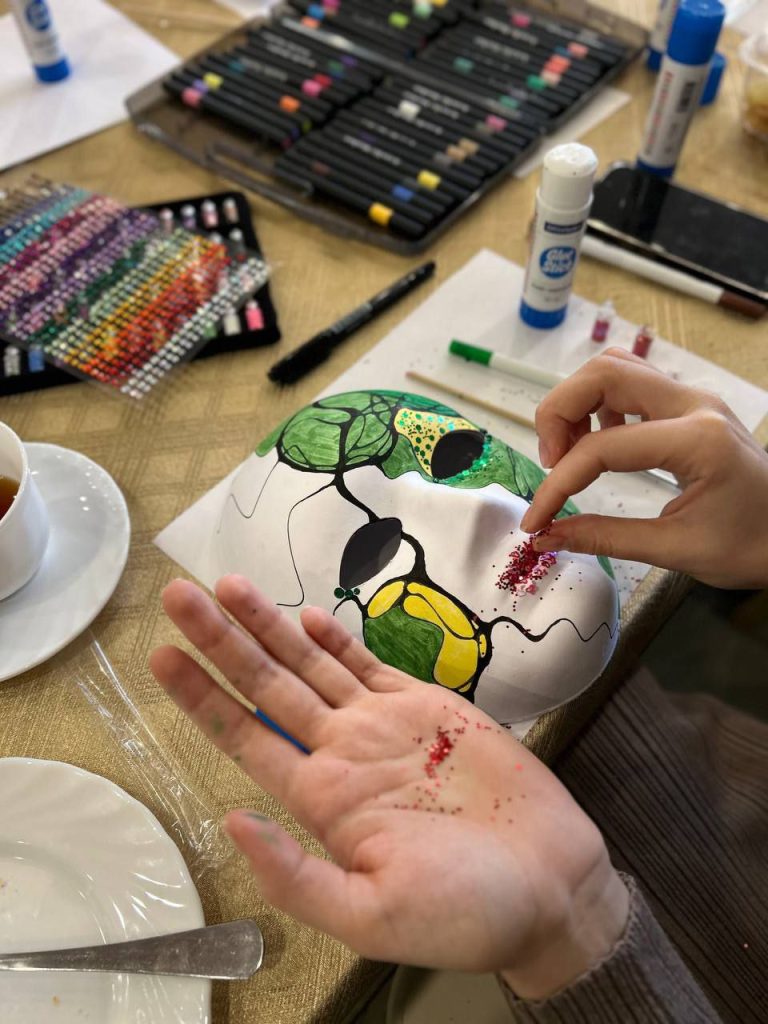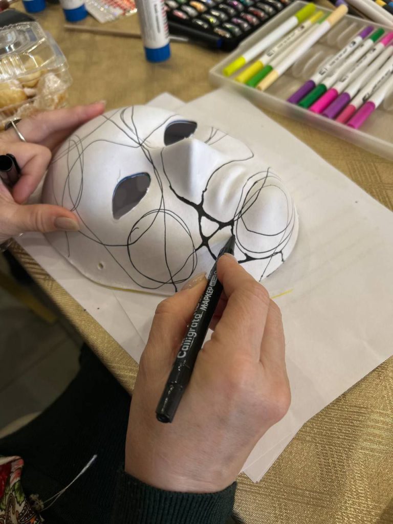 Создание своего собственного рисунка на маске помогает перестать бороться с собой и начать поддерживать себя, увидеть те стороны, которые нас сдерживают, и одновременно — те ресурсы, на которые можно опереться, поясняет специалист. В ходе прошедшего мастер-класса девушки и женщины погружались в творческий процесс, работая по очереди с двумя масками.