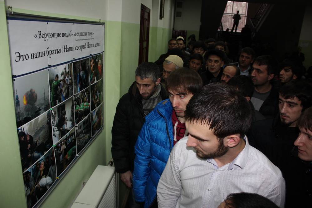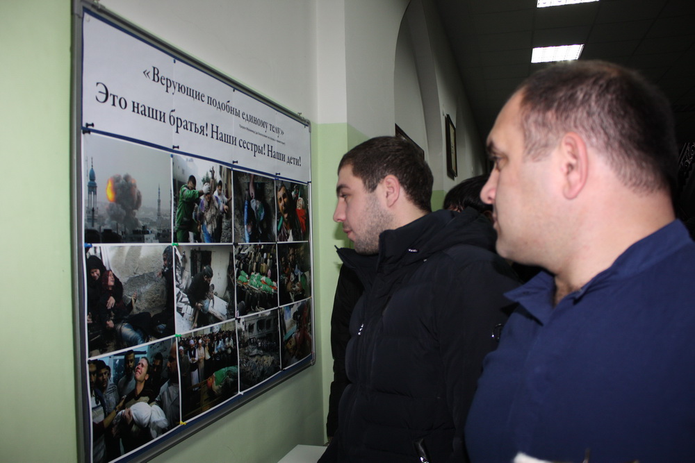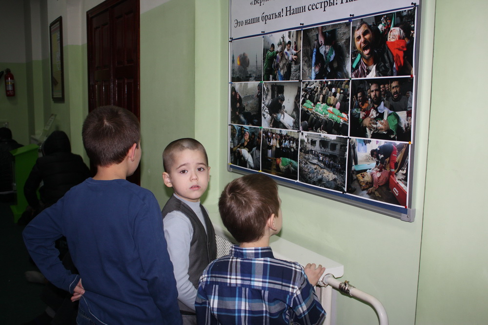 Кроме этого, в пятничный день прихожане могли увидеть и прочувствовать положение своих единоверцев на специальной фотовыставке в холле Исламского комплекса, посвященной трагическим событиям в Палестине.