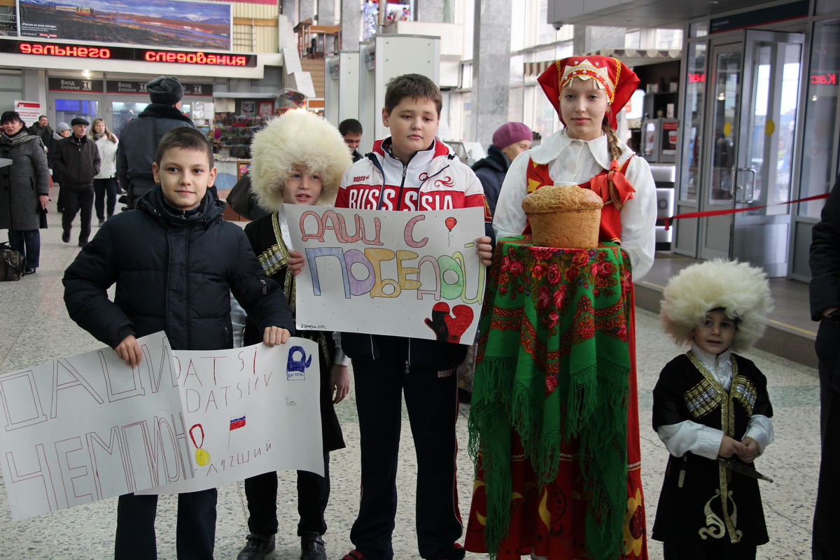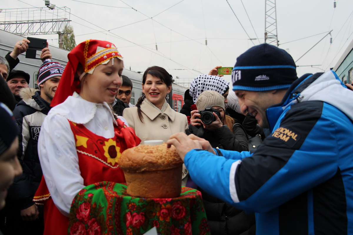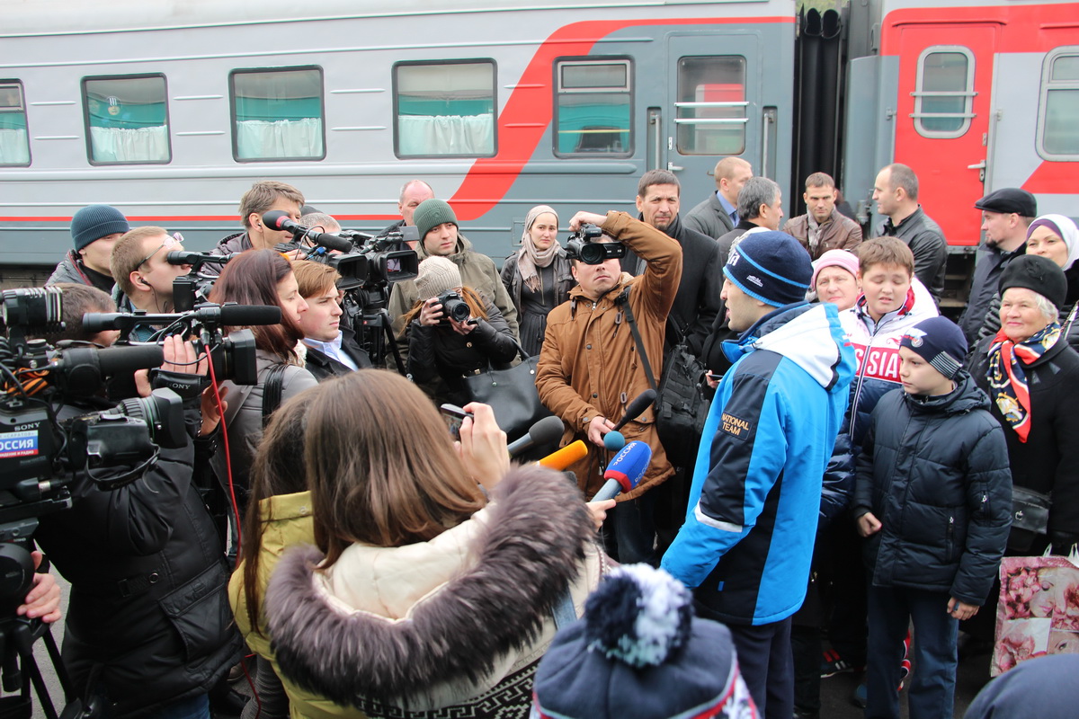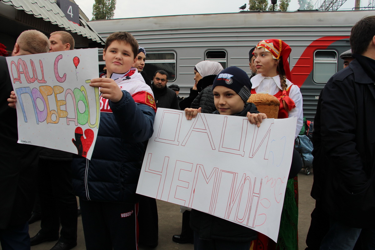 В обед на железнодорожном вокзале стали собираться люди с цветами и плакатами в руках. Все они ждали прибытие поезда из Москвы, в котором ехал лучший кикбоксер планеты в разделе К-1 в весовой категории 75 кг Даци Дациев.