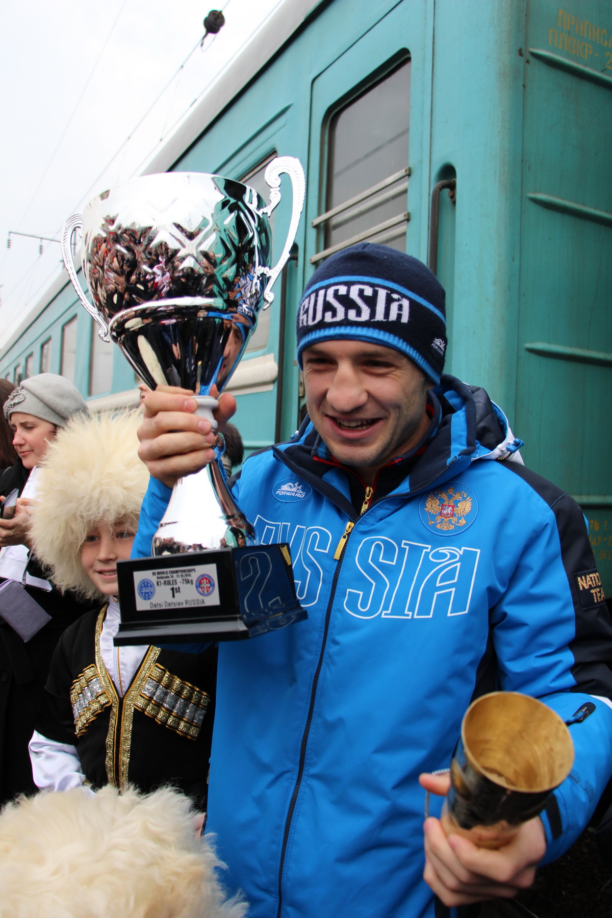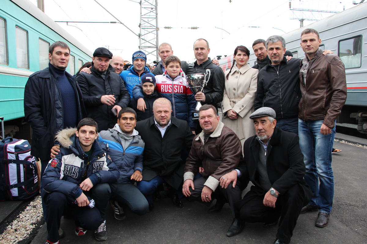 Не успел новоиспеченный чемпион сойти на перрон, как его тут же окружили родные и близкие. Среди встречающих были заместитель министра молодежной политики, спорта и туризма Саратовской области, начальник управления информационно-организационной работы Виктория Бородянская, тренер Дациева, президент Федерации кикбоксинга Приволжского федерального округа, заслуженный тренер России Расул Далгатов, призер Олимпийских Игр 2008 года в Пекине, заслуженный мастер спорта России Сергей Улегин, директор областной детско-юношеской спортивной школы по спортивным единоборствам имени С.Р. Ахмерова Ренат Батраев, заместитель муфтия региона, член Общественной палаты губернии Ахмед-хаджи Махметов и др.