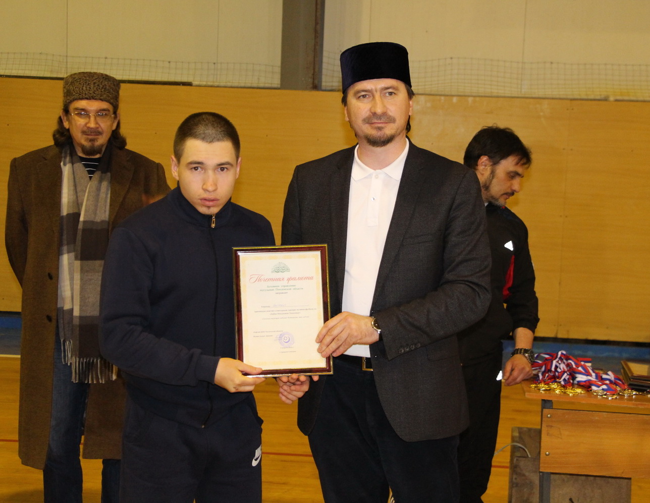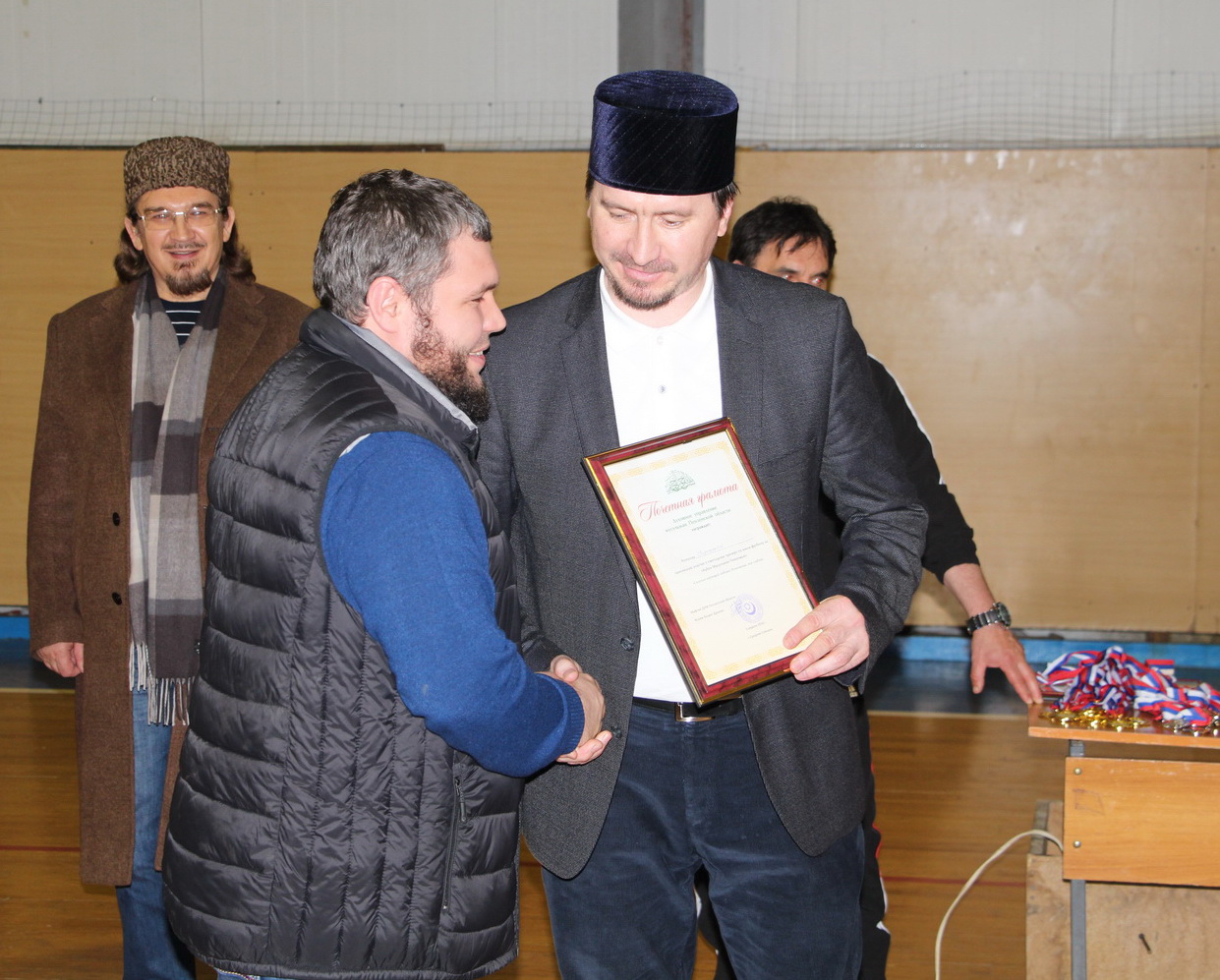 Далее состоялась церемония награждения. Муфтий Пензенской области Ислям-хазрат Дашкин вручил командам почетные грамоты и медали. Также он наградил саратовскую сборную переходящим Кубком.
