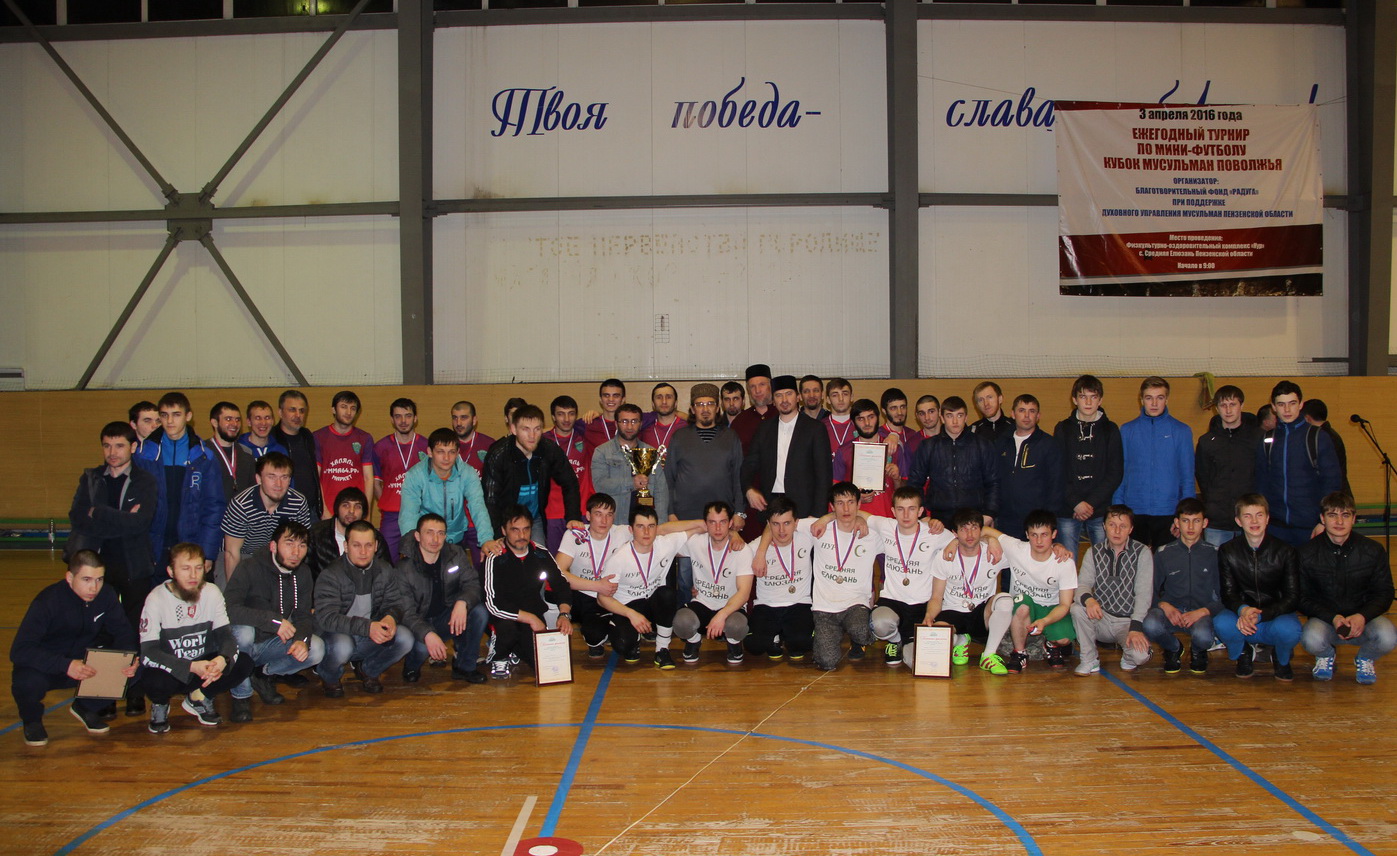 Вчера 3 апреля состоялся ежегодный турнир по мини-футболу «Кубок мусульман Поволжья». В этом году спортивное мероприятие прошло в ФОК «Нур» с. Средняя Елюзань Пензенской области. Организатором встречи стал благотворительный фонд «Радуга» при поддержке ДУМ региона.