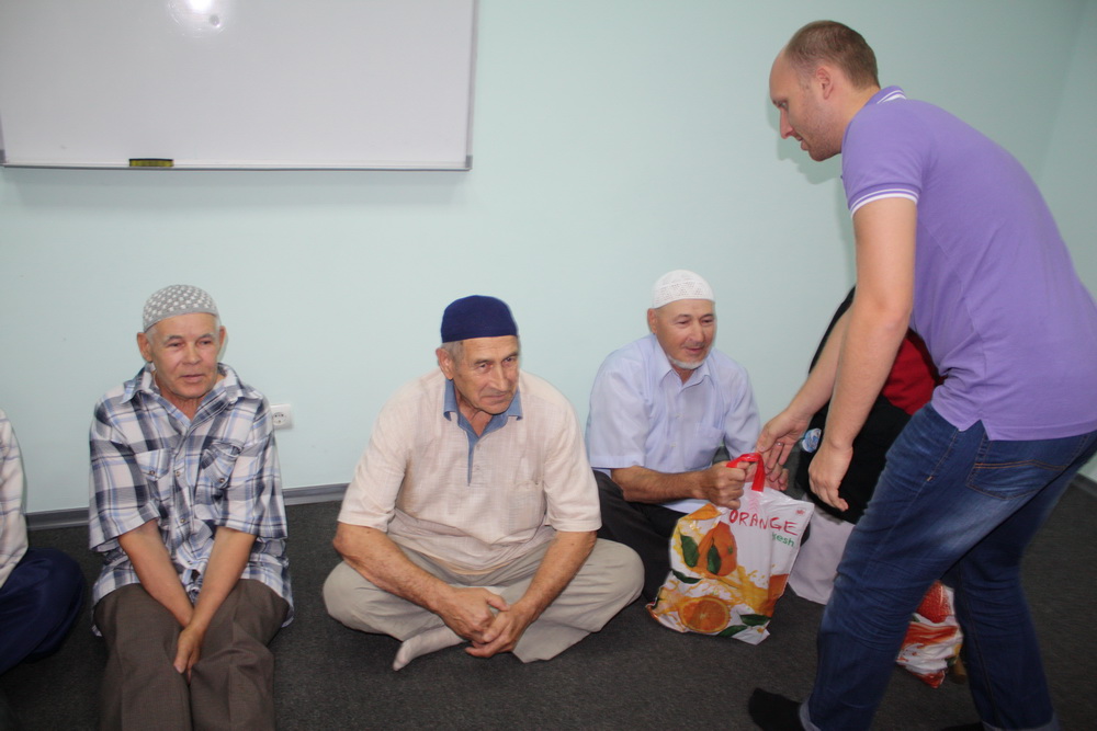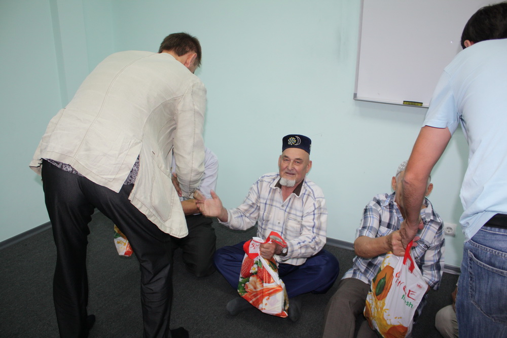 В последний день Рамадана в саратовской Соборной мечети почтенные мусульмане получили подарки в честь окончания Священного месяца Поста. Организатором акции выступил актив татарской молодежи, который поздравил старшее поколение с наступающим праздником Ид аль-Фитр (Ураза-Байрам) и немного украсил для них предстоящее торжество.