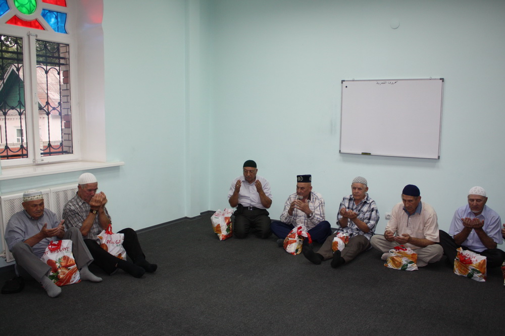 После обеденного Зухр-намаза мусульмане собрали аксакалов и поздравили их с приближающимся светлым праздником. После теплых слов в адрес уважаемых прихожан мечети им были вручены подарочные пакеты, наполненные сладостями, чаем, фруктами и другими продуктами, которые ветераны и пенсионеры не всегда могут позволить себе купить в повседневной жизни.