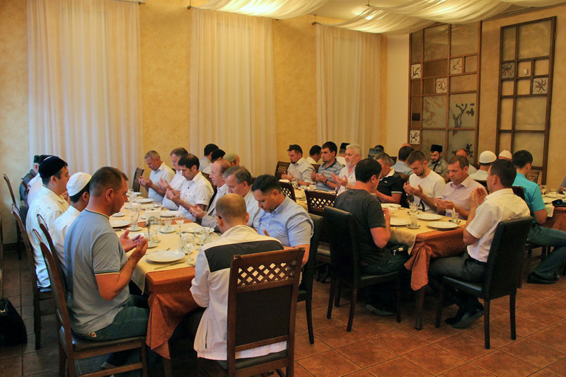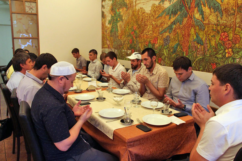 С первыми звуками азана постящиеся приступили к праздничной трапезе. Отведав различные блюда, они продолжили общение в теплой атмосфере за чашкой чая.