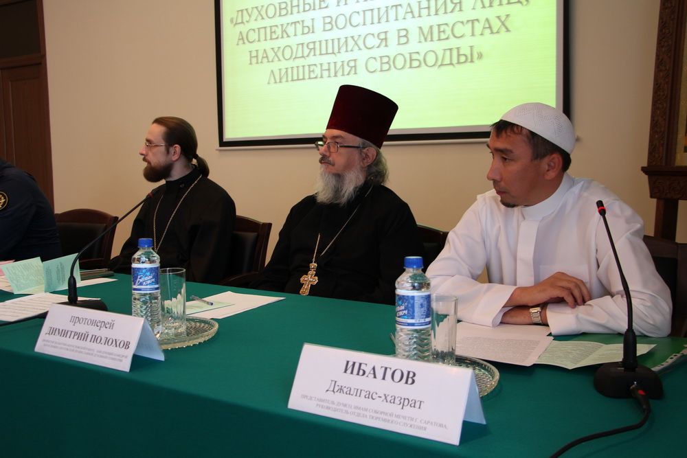 Саратовский имам Джалгас-хазрат Ибатов коснулся проблем эффективного донесения традиционных ценностей Ислама до заключенных, рассказал про проводимые встречи и беседы мусульманских религиозных деятелей с единоверцами, оказавшимися в местах лишения свободы. Имам Соборной мечети подчеркнул, что в ходе таких мероприятий поднимаются темы нравственности и морали, вопросы духовного развития и самосовершенствования. «Кроме этого проводятся беседы для предотвращения конфликтов среди осужденных, а также между осужденными и администрацией исправительных учреждений», — добавил Джалгас-хазрат.