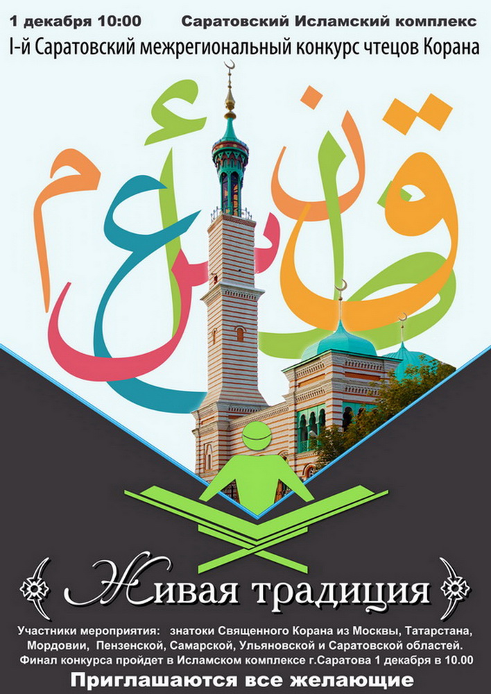 В состязании, которое пройдет в Исламском комплексе г.Саратова с 30 ноября по 1 декабря, примут участие знатоки Священной книги мусульман из Москвы, Татарстана, Мордовии, Пензенской, Ульяновской, Волгоградской и Саратовской областей.