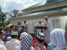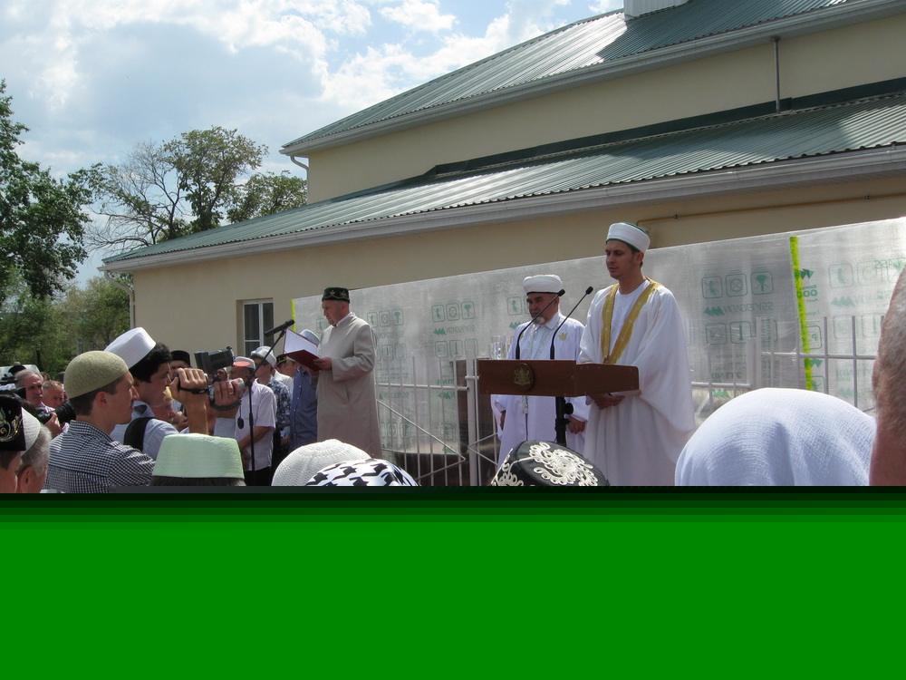 Церемония открытия началась с чтения Корана в исполнении имама мечети Расим-хазрата Аюпова, после чего гости поздравили мусульман поселка с важным событием.