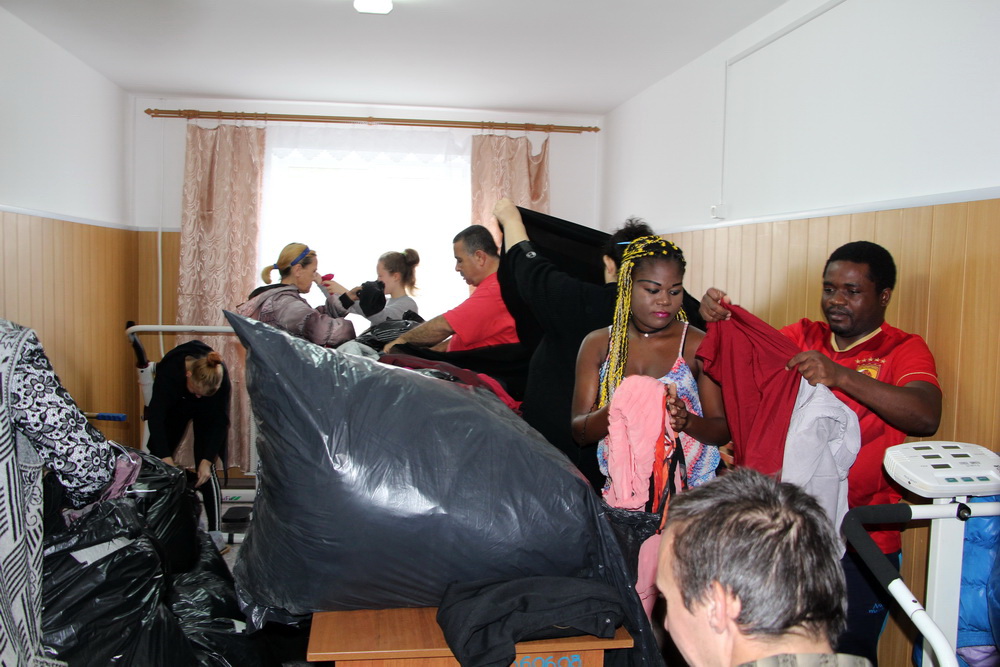 В начале октября представители Духовного управления мусульман Саратовской области и «Родника» отправились с гуманитарной помощью в Центр временного размещения вынужденных переселенцев и беженцев в г.Красноармейске. Бежавшие от войны из разных стран были приятно удивлены подаркам, ведь многие из них покидали родину с минимумом необходимых вещей. Теперь они смогут комфортно пережить зиму — жители центра выбирали для себя пуховики, куртки и пальто, свитера, шапки, шарфы, платья, рубашки, футболки, брюки, спортивные костюмы, сапоги, ботинки и детскую одежду.