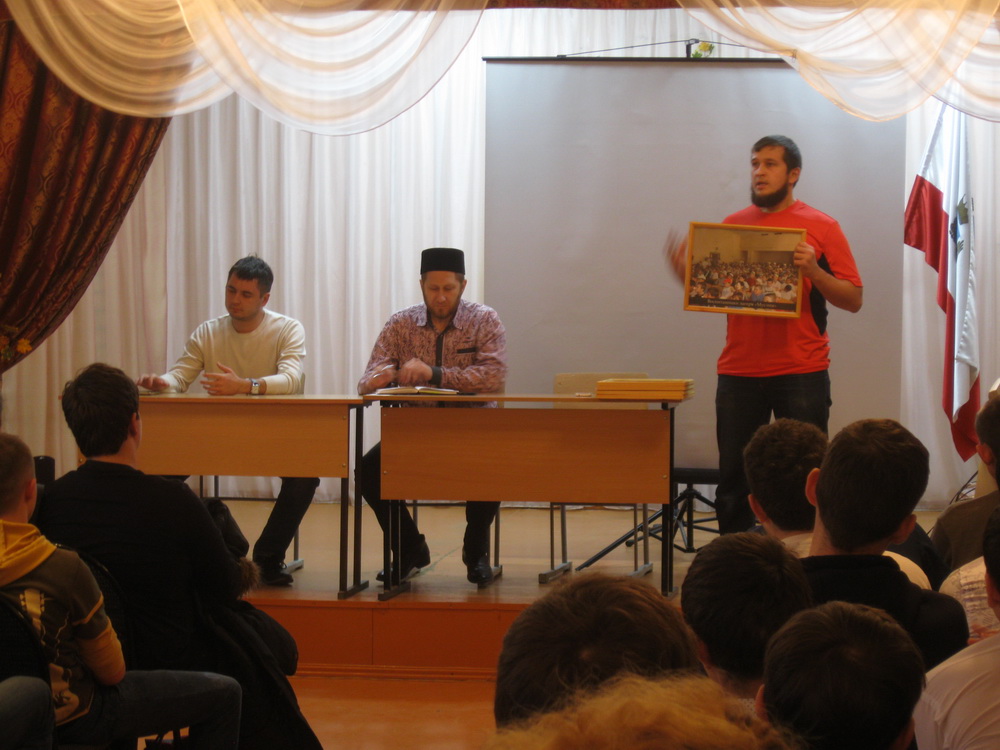 9 ноября имам-хатыб Соборной мечети г.Саратова Фаниль-хазрат Бибарсов и руководитель общественной культурно-просветительской организации «Возрождение» Рустам-хаджи Абдульманов посетили Саратовский техникум отраслевых технологий (бывшее ПУ №22), где провели встречу с его преподавателями и первокурсниками.