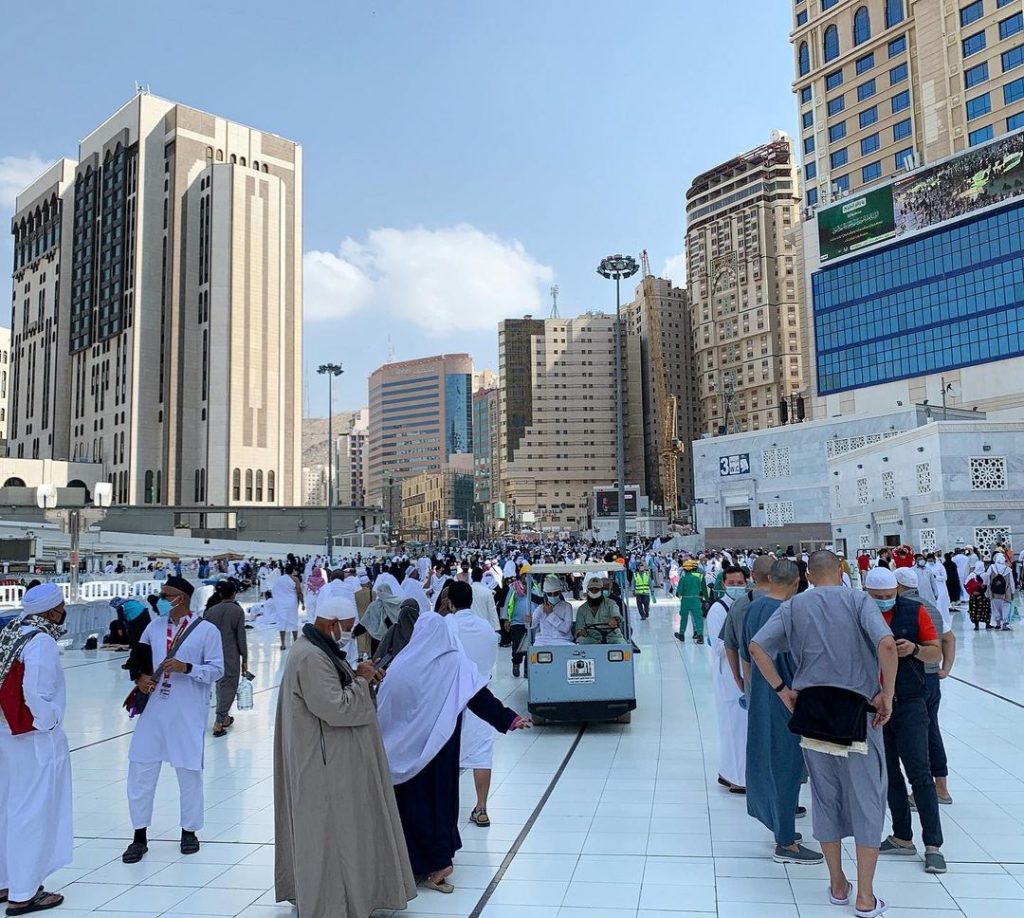 Перед этим они совершили коллективный намаз в мечети Аль-Харам в Мекке и сделали прощальный таваф — обход вокруг Священной Каабы.
