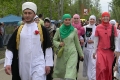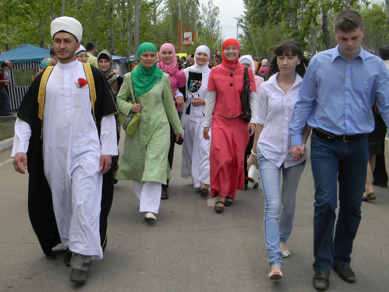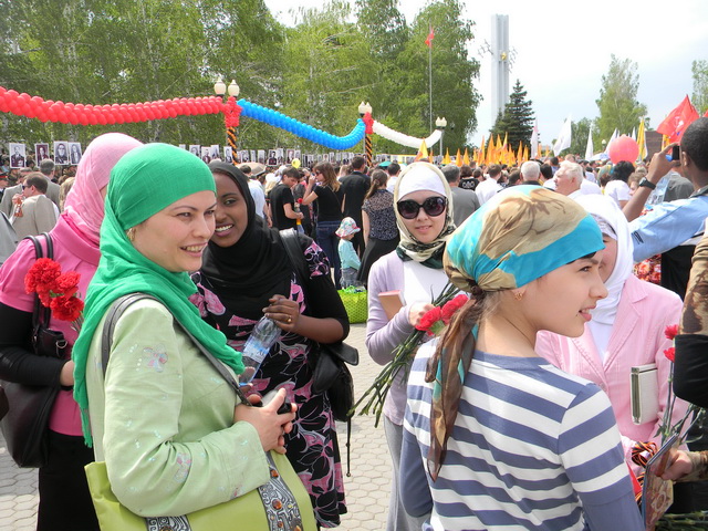 Со всех сторон пестрели флаги региональных отделений российских партий. Однако особое внимание привлекли вовсе не они, а девушки в хиджабах: саратовские мусульманки также поучаствовали в праздничном мероприятии.