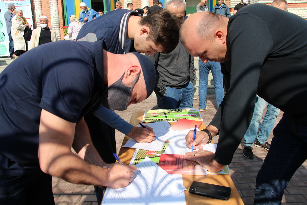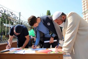 К акции «Отраву за поселения» активно подключились общественные организации «Возрождение» и «Туран». Их активисты провели опрос на территории Исламского комплекса г.Саратова.