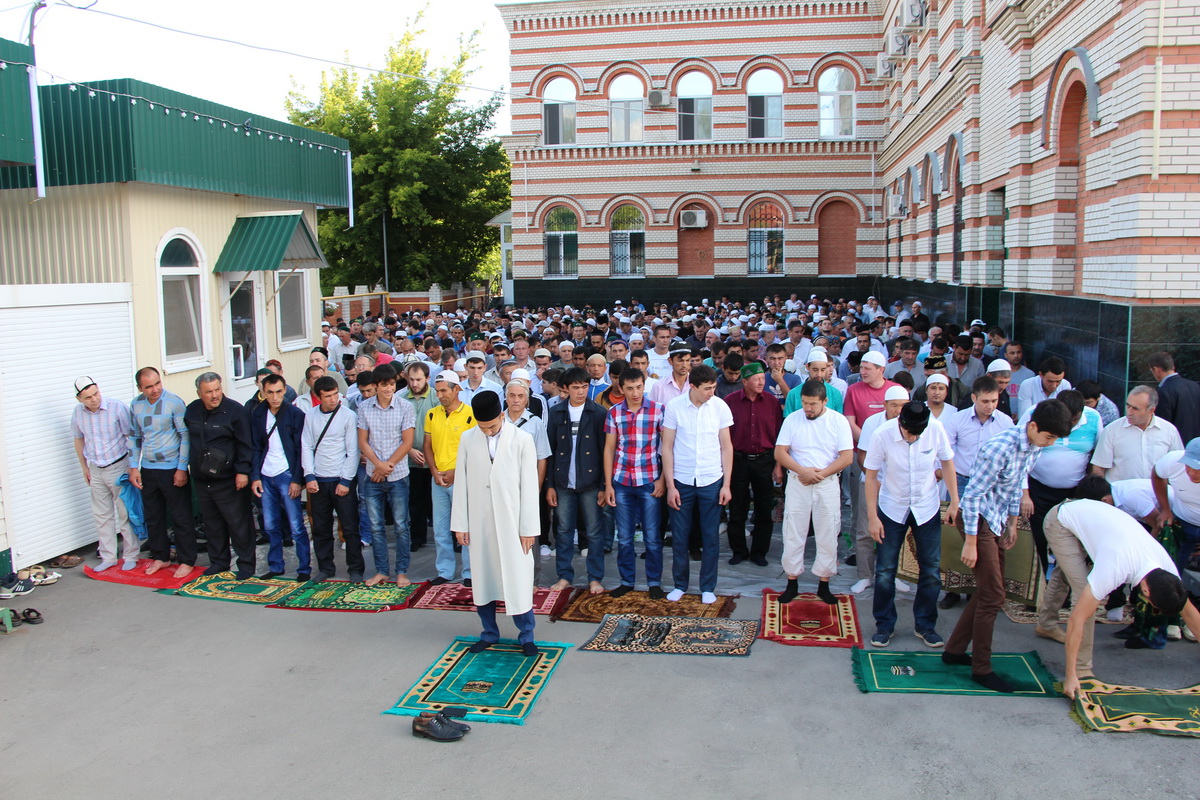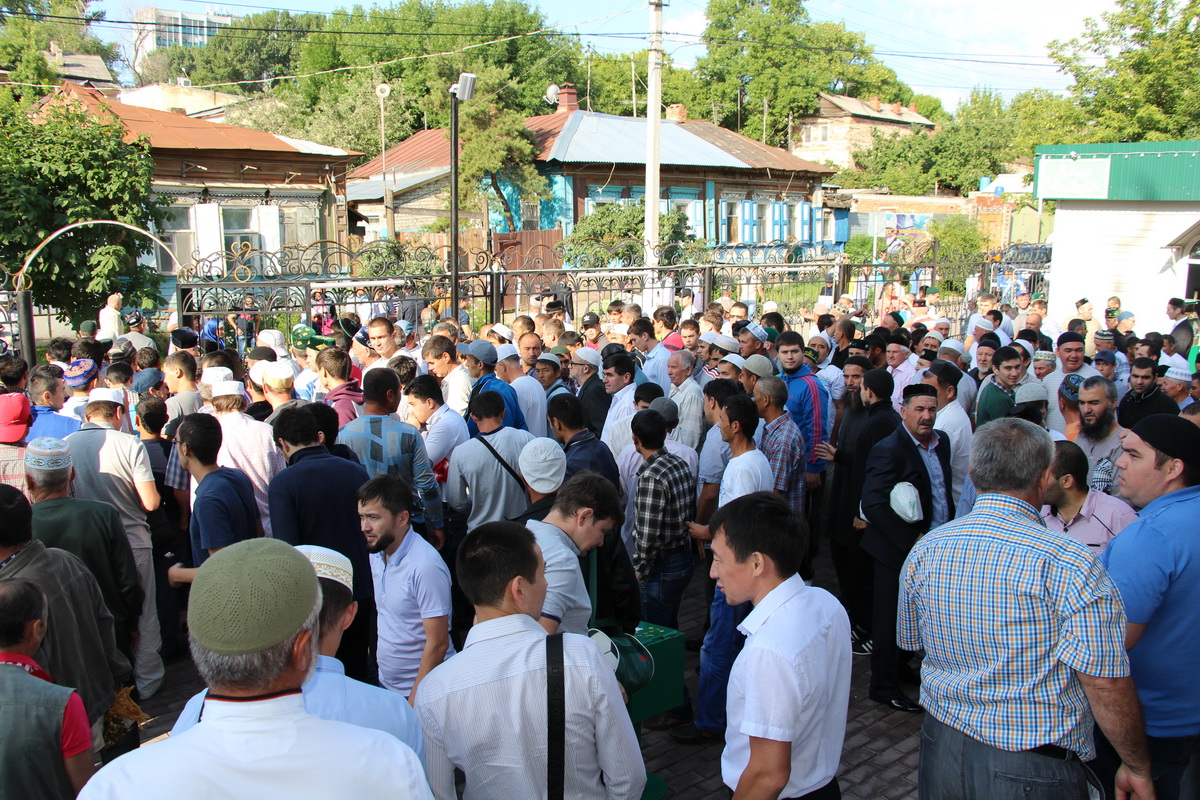Ранним утром в Соборной мечети г.Саратова было не протолкнуться – мусульмане различной этнической и социальной принадлежности поспешили в дом Аллаха чтобы поздравить друг друга с завершением Поста и совершить праздничный Ид-намаз. На подступах к мечети нарядно одетых мужчин встречали звуки Корана, который красивым мелодичным голосом читали имамы и знатоки Священного Писания.