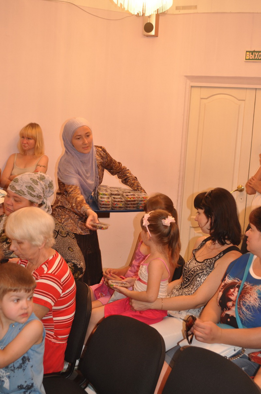 На встречу руководством центра были приглашены 20 многодетных семей г. Саратова. Родители пришли вместе со своими детьми, и, разумеется, мусульманки не оставили их без праздника.